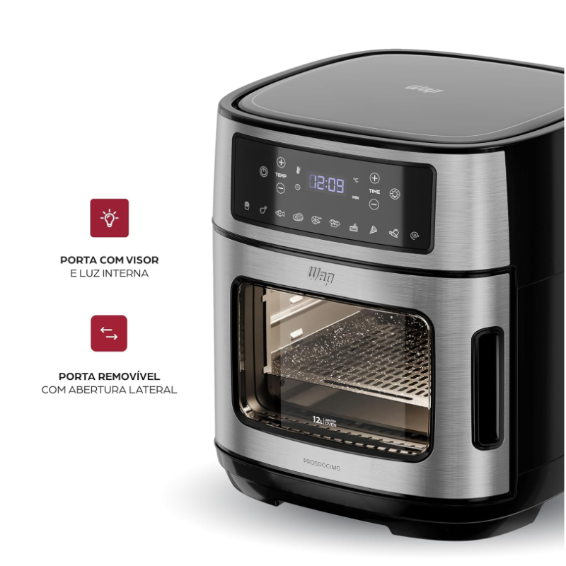 A porta com abertura lateral, equipada com visor e luz interna permite que você acompanhe o progresso de suas refeições sem abrir a porta, mantendo o calor interno. A porta também é removível para torna a limpeza uma tarefa rápida e descomplicada.