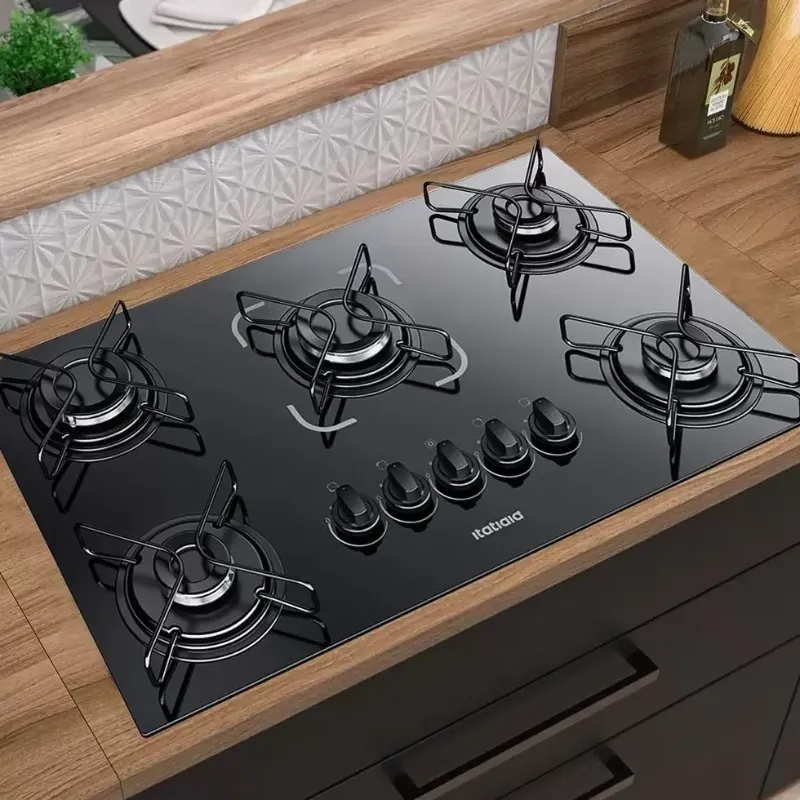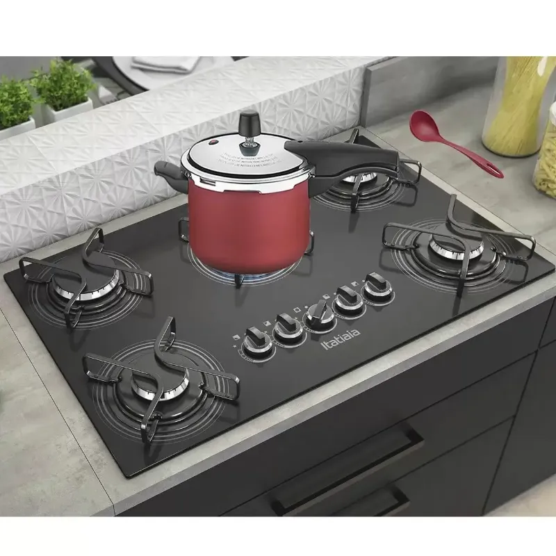 - 01 Cooktop Itatiaia 5 Bocas Mesa Vidro Preto Bivolt