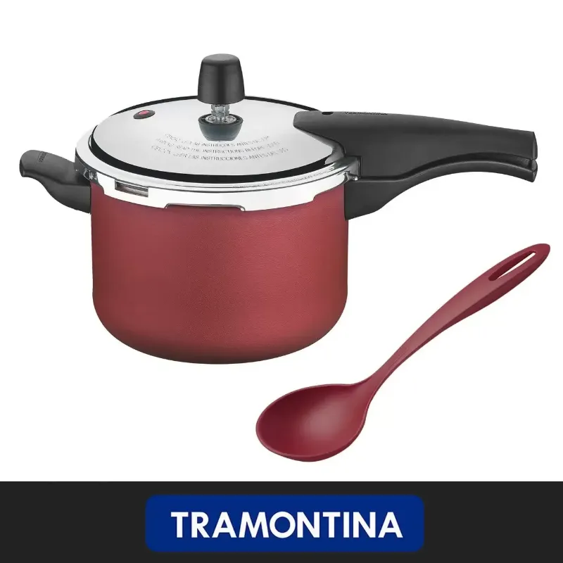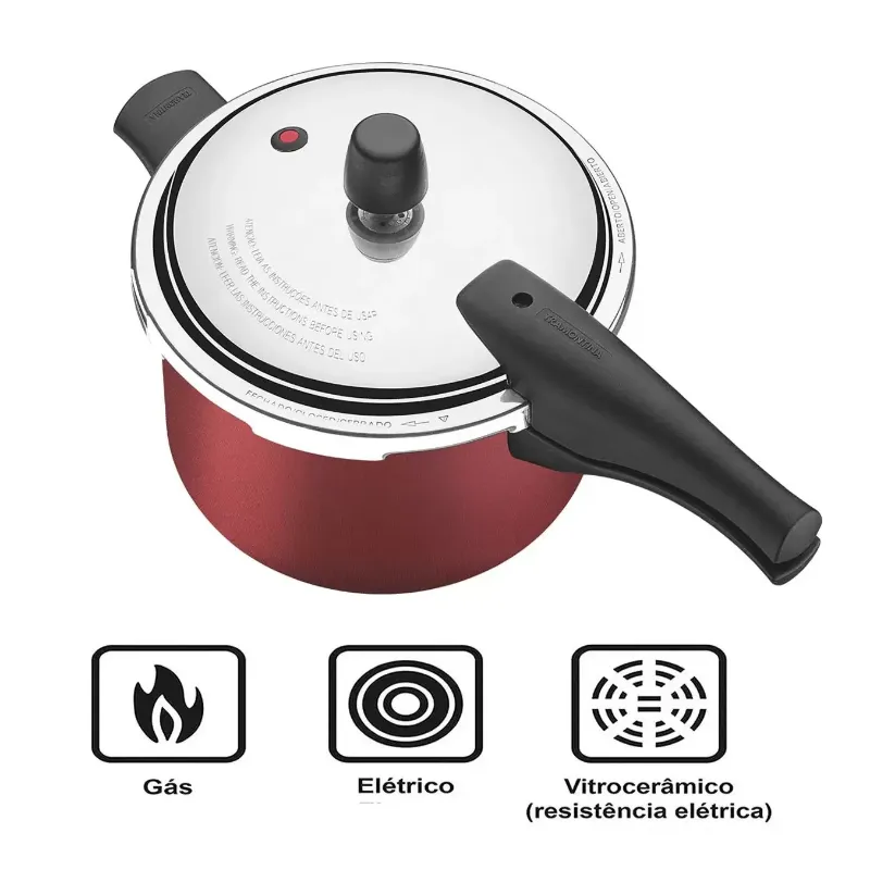 Cooktop Itatiaia Essencial 5 Bocas Mesa Vidro Preto Bivolt e Panela De Pressão Vancouver 4,5 Litros Vermelha com Concha - Itatiaia e Tramontina