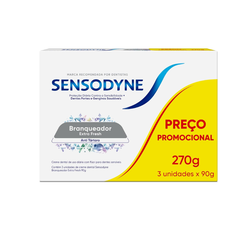 Sensodyne Creme Dental Branqueador Extra Fresh com Flúor, Leve 3 e Pague 2, 90g