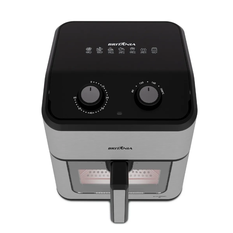 Experimente o sabor da praticidade com a Air Fryer Britânia 8L Redstone Visor Glass BAF80A. Desenvolvida para quem busca eficiência na cozinha sem abrir mão do sabor, a Air Fryer combina potência, estilo e funcionalidade. Seja no preparo de refeições completas ou na agilidade do dia a dia, você transforma a forma de cozinhar com mais leveza e autonomia. Com capacidade de 8 litros, a Air Fryer Britânia atende desde porções individuais até refeições para toda a família. Sua função 3 em 1 permite fritar sem óleo, assar e reaquecer com qualidade superior. A tecnologia Air Flow 360º garante cozimento uniforme, deixando seus pratos mais crocantes, suculentos e saudáveis, tudo isso com rapidez e economia de tempo. O design inteligente da BAF80A conta com visor Glass e luz interna, que oferecem controle visual total durante o preparo, mesmo com o cesto fechado. O revestimento Redstone evita que os alimentos grudem e facilita a limpeza, ideal para quem deseja praticidade sem esforço. Valorize sua rotina com a potência de até 2000W da Air Fryer 3 em 1 da Britânia. Torne cada refeição mais nutritiva, bonita e prazerosa. Adquira a sua Air Fryer Britânia e sinta a diferença no sabor, no tempo e no cuidado com sua alimentação.