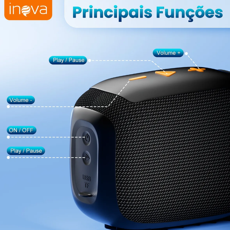 Resistente e versátil, a Inova Caixa de som bluetooth está pronta para enfrentar qualquer desafio. Seja numa festa improvisada ou num dia relaxante ao ar livre, ela estará ao seu lado, oferecendo um som de qualidade que vai surpreender a todos ao seu redor.