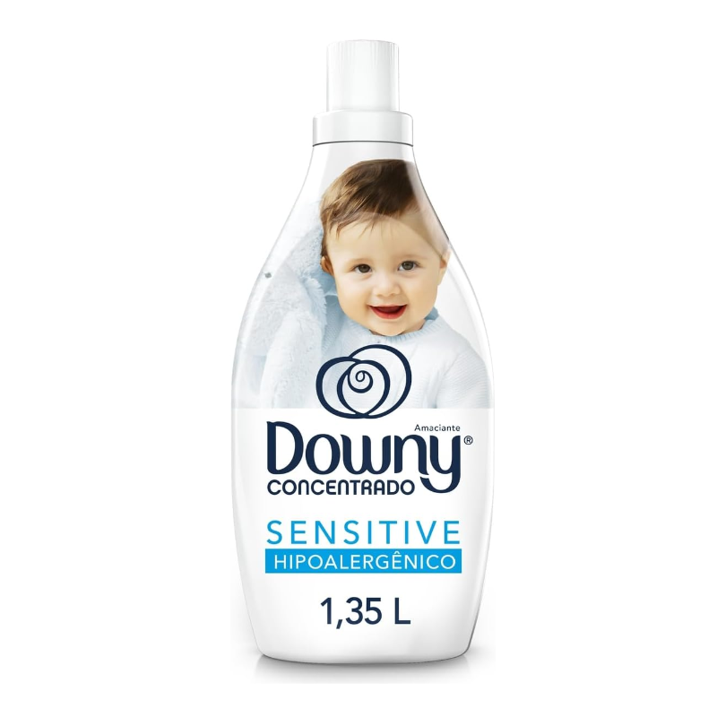 Amaciante concentrado Downy Sensitive que deixa as roupas do seu bebê com um perfume suave o dia todo. Todo mundo sabe que nos primeiros meses de vida o organismo do bebê e sua pele são extremamente sensíveis. Assim, suas roupinhas devem lavadas com produtos que não vão causar nenhum tipo de alergia. Downy Sensitive é hipoalergênico, dermatologicamente testado e recomendado por Pampers, por isso é o amaciante ideal para a lavagem das roupinhas dos pequenos, deixando-as com perfume suave e duradouro. Por ser concentrado, 1,35L de Downy é equivalente a 5,4L de um amaciante diluído comum. Isso significa que ele rende até 60 lavagens. Para garantir um melhor uso, utilize apenas a quantidade de amaciante indicada na embalagem do produto.