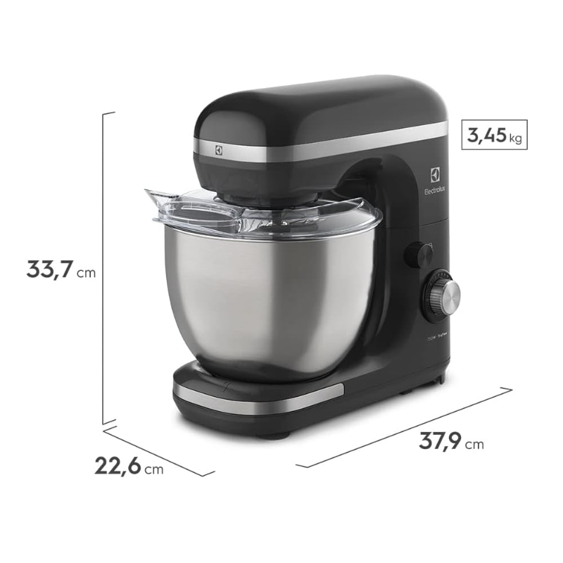 Explore sua criatividade com a batedeira planetária electrolux 750w cinza experience com tigela inox 5l. robusta e versátil, é ideal para fazer deliciosas receitas caseiras com aromas e consistências excepcionais para sua família. prepare seus merengues, tortas e pães preferidos e muito mais. o movimento planetário da batedeira produz resultados uniformes e homogêneos graças à tecnologia truflow, que combina um poderoso motor com 750w à tigela e à versatilidade dos batedores para atingir pontos precisos de textura, dando um acabamento especial às suas receitas. a alta capacidade da tigela de 5l em aço inox permite preparar receitas em grande quantidade em uma única porção. utilize a partida suave para evitar respingos ou escolha de forma intuitiva uma das 12 velocidades + função pulsar para atingir a textura ideal de suas receitas, desde cremes até massas espessas. os 3 batedores ajudam a alcançar excelentes resultados de textura em todo tipo de preparo. a tampa antirrespingos preserva a bancada contra sujeira, enquanto os pés antiderrapantes mantêm a estabilidade da batedeira durante os preparos. os acessórios são próprios para lava louças. o design robusto da batedeira une sofisticação e resistência na sua casa. a composição livre de bisfenol a mantém toxinas nocivas à saúde longe da sua família. combine a modernidade do produto a outros itens eletroportáteis da linha electrolux experience
