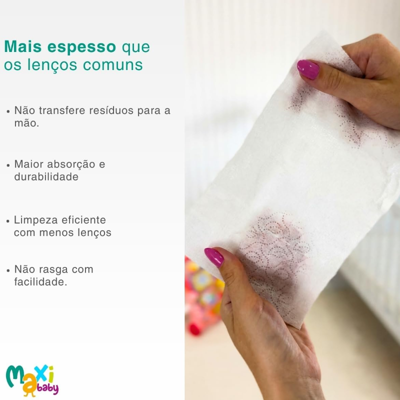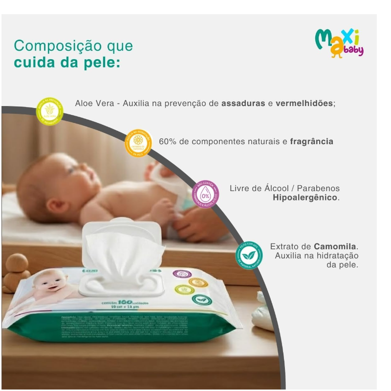 Kit 3 Lenços Umedecidos Hipoalergênico com 50un Cada Maxi Baby Proporcione ao seu bebê o cuidado que ele realmente merece com as Toalhas Umedecidas Hipoalergênico Maxi Baby. Ideal para bebês com pele sensível, este lenço umedecido combina tecnologia, proteção e muito carinho em cada uso. Com fórmula hipoalergênica, livre de álcool e parabenos, ele garante uma higiene delicada sem ressecar ou irritar a pele. Produzida com 60% de materiais naturais, garantindo um toque macio e mais seguro para recém-nascidos e crianças de todas as idades. Sua fragrância suave foi cuidadosamente desenvolvida para não agredir a pele, oferecendo frescor sem excesso de perfume. Além disso, ingredientes como aloe vera e extrato de camomila ajudam a acalmar, hidratar e proteger, reduzindo o risco de vermelhidão e irritações, sendo perfeito para as rotinas de troca de fraldas, limpeza das mãos, boca, do rosto e até momentos fora de casa. Para tornar o uso ainda mais prático, a embalagem dispõe de tampa plástica rígida, que preserva a umidade dos lenços por muito mais tempo e evita desperdícios. Cada folha possui tamanho 19 x 13 cm, oferecendo ótima cobertura e facilitando a higienização completa do bebê. A versão com 50 unidades garante excelente durabilidade, sendo ideal para levar na bolsa maternidade, usar em casa, viagens e em qualquer momento de necessidade. Principais Características: - Idade Recomendada: 0m+ - Com Extrato de Camomila e Aloe Vera - Auxilia na Prevenção de Assaduras - Desenvolvido com 60% de Ingredientes Naturais - Clinicamente Testado - Hipoalergênico - Fragrância Suave - Livre de Álcool e parabenos - Tampa plástica rígida: Preserva a umidade das toalhas - Contém 50 unidades de toalhas Especificações Técnicas: - Conteúdo da Embalagem: Kit 3 Lenço Umedecido c/50un Cada Maxi Baby - Garantia: 30 Dias (Contra Defeitos de Fabricação pelo Fabricante) - Peso: 285g - Código do Fabricante: 25000-3 - EAN: 7898975752610 - Marca: Maxi Baby Imagens meramente ilustrativas.