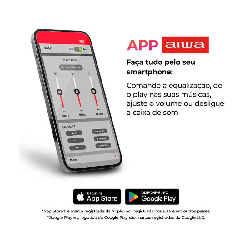 Imagine uma caixa de som portátil com um áudio que encanta e surpreende? O Speaker AWS-SP-03-BL entrega exatamente isso! Esse modelo de caixa de som conta com radiador passivo que, em conjunto com o alto-falante, acentua os graves. Um produto com 15W RMS de potência que você pode levar pra lá e pra cá com toda facilidade do mundo! Seu design moderno e charmoso possui revestimento de tecido, além de uma alça prática para o transporte. E, graças à certificação IPX4, AWS-SP-03-BL tem maior durabilidade, já que possui resistência contra respingos de água. A bateria bivolt recarregável pode chegar até 12 horas de reprodução contínua. Quer ainda uma experiência sonora mais incrível? Utilize a tecnologia TWS para conectar dois speakers AWS-SP-03-BL e tenha a experiência de um som duplicado. Com o Bluetooth 5.3, a conexão é estável e eficiente, permitindo uma transmissão de áudio sem delays e com menor consumo de energia. E para dar cores para as suas músicas, as luzes de LED dinâmicas, acompanham o ritmo das suas batidas, tornando seu momento ainda mais especial. E tem mais: o speaker possui diversas opções de conexão — entradas para cartão de memória, USB e USB-C, facilitando o acesso às suas playlists de diferentes maneiras. Saiba mais detalhe sobre o Speaker AWS-SP-03-BL: Som portátil: Com 15W RMS de potência, o Speaker AWS-SP-03-BL oferece um som claro e equilibrado, com uma boa resposta de graves e agudos. Melhor qualidade de graves: O radiador passivo trabalha em conjunto com o alto-falante, ajudando a reproduzir graves mais profundos e impactantes. Diversão a todo momento: A bateria bivolt recarregável com até 12 horas de duração permite que você curta suas músicas preferidas sem se preocupar com a recarga toda hora. Resistência a respingos de líquidos: Com certificação IPX4, o speaker resiste a respingos de líquidos; Controle o som pelo celular: O aplicativo AIWA Brasil permite ajustar DJ Effects, equalização, modos e níveis de intensidade das luzes da sua caixa de som portátil. Deixe a criatividade falar mais alto e leve a diversão a um novo patamar! Adicione cores ao line-up: São três modos de luzes dinâmicos com efeito multicolorido para criar um cenário vibrante e alegre! Transmissão via versão mais atual do Bluetooth: Com o Bluetooth 5.3, conecte-se e deixe a música fluir sem interrupções. Desfrute de uma conexão estável, sem delays e com economia de bateria. Intensifique o som: Conecte dois speakers AWS-SP-03-BL e tenha um som duplicado. Múltiplas conexões: A caixa de som portátil comporta três conexões: cartão de memória, entrada USB e outra para carregamento USB Tipo-C. Alça de Transporte: Para você carregar sua caixa com maior segurança e praticidade.