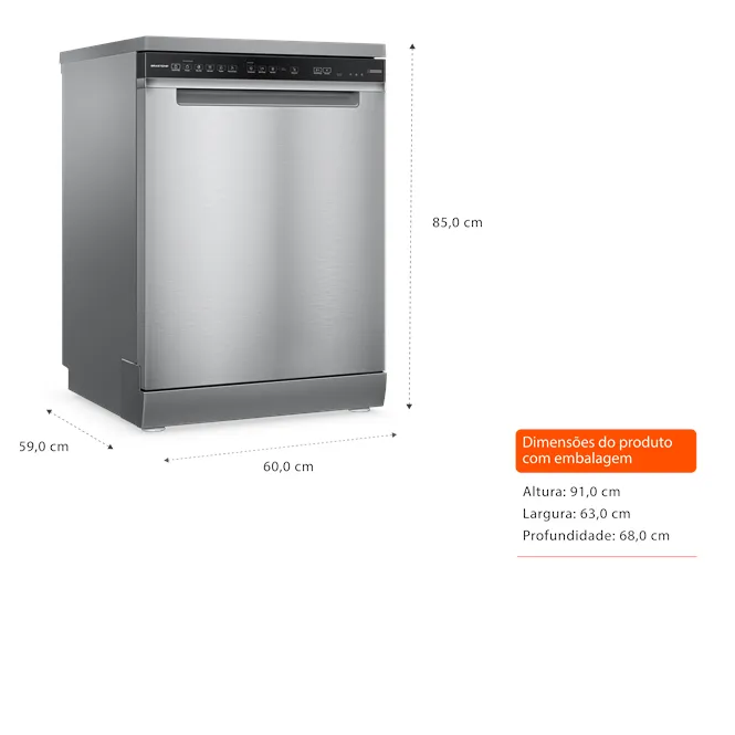 Lava-louças 15 Serviços Brastemp Inox com Smart Sensor - BLF61AR A nova linha de Lava-louças 15 Serviços Brastemp, garante excelência em performance de lavagem e conta com a função Smart Sensor, assim, você não precisa mais se preocupar em escolher qual ciclo usar, ele detecta o nível de sujeira das louças e seleciona o ciclo de lavagem ideal para garantir uma limpeza mais eficiente. Com mais espaço interno¹, comporta diferentes tipos de louça e mantém sua cozinha livre da bagunça que se forma na pia. Além disso, essas e as demais funções foram pensadas e projetadas para garantir economia de água², energia³ e do seu tempo.
