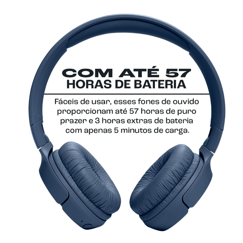 Um Headphone para te acompanhar no dia a dia! Os fones de ouvido JBL Tune 520BT transmitem o potente som JBL Pure Bass graças à última tecnologia de bluetooth 5.3. Fáceis de usar, esses fones de ouvido proporcionam até 57 horas de puro prazer e 3 horas extras de bateria com apenas 5 minutos de carga. Baixe o aplicativo gratuito JBL Headphones e personalize seu som através do EQ, enquanto os avisos por voz o orientam a respeito dos recursos dos fones de ouvido. Gerencie chamadas, som e volume pelo fone, graças ao conveniente controle de botão. Se uma chamada for recebida enquanto você estiver assistindo a um vídeo em outro dispositivo, o JBL Tune 520BT muda diretamente para o seu celular, para que você nunca perca uma chamada. Leve e confortável mesmo após horas de uso, os fones de ouvido JBL Tune 520BT são dobráveis para caber em sua mochila e acompanha-lo em qualquer lugar.