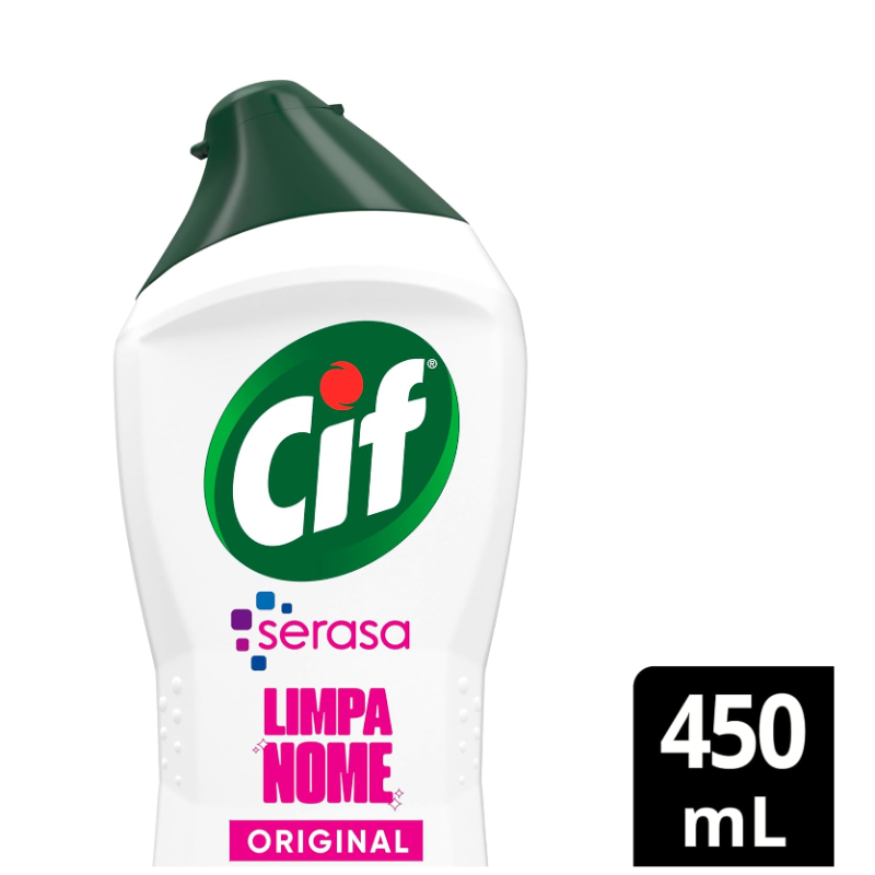 • Cif Cremoso Original é o produto de limpeza milagrosa que limpa fácil e dá brilho em mais de 100 superfícies*, removendo 100% da sujeira difícil, sem esforço • O Cif Cremoso Original possui um perfume suave, é mais concentrado e rende 7 garrafas do limpador comum** • Fórmula com tecnologia poderosa que limpa sem riscar***, removendo toda a sujeira desde a mais pesada até a limpeza de casa do dia a dia, deixando um brilho imbatível • Com o Cif, a limpeza nunca foi tão fácil e versátil. Cif Cremoso possui três variantes: Original, Limão e Laranja • Cif Cremoso Original é o produto de limpeza milagrosa para todo tipo de objeto como: eletrodomésticos, pias, couro sintético, borracha, plástico, porcelana e serve até como limpador de pisos • Cif promove uma limpeza milagrosa completa, com produtos versáteis que atendem a todas as suas necessidades. Cif. Sinta a limpeza acontecer! Cif Cremoso Original 450 ml é o produto de limpeza milagroso que limpa fácil e dá brilho em mais de 100 superfícies*, removendo 100% da sujeira difícil, sem esforço. O higienizador de casa cremoso é mais concentrado e rende 7 garrafas do limpador comum**. Sua fórmula, poderosa, limpa sem riscar***, removendo toda a sujeira desde a mais pesada até a limpeza de casa do dia a dia, deixando um brilho imbatível. Limpe toda sua casa usando o Cif Cremoso Original, que limpa todo tipo de objeto, como eletrodomésticos, potes plásticos, pias, brinquedos das crianças, persianas, pisos e até ajuda a deixar aquele cabo de carregador de celular como novo! Com o Limpador Cif, a limpeza nunca foi tão fácil e versátil. A linha do milagroso Cif Cremoso possui outras variedades de perfumes, como Laranja e Limão, que se adaptam ao seu estilo. Conheça a linha completa de produtos de limpeza Cif que não podem ficar de fora da sua lista de material de limpeza. Use também: Cif Cozinha, Cif Derrete Gordura, Cif Banheiro, Cif Tira Limo Com Cloro, Cif Vidros, Cif Cremoso e muito mais. Cif: Sinta a limpeza acontecer! Modo de usar: 1. Agite antes de usar. 2. Aplique uma pequena quantidade do produto sobre uma esponja ou pano úmido. 3. Esfregue a superfície suavemente até eliminar a sujeira. 4. Passe um pano úmido para finalizar. 5. Feche a embalagem após o uso. *Manchas de sabão e gordura queimada, comparado com limpadores comuns do mercado. Consulte a diferença de preços entre produtos. ***Não usar esponja ácida, como palha de aço, para a limpeza de vidros. A imagem do produto é meramente ilustrativa e o rótulo pode variar. Será enviada a embalagem disponível no momento da compra.