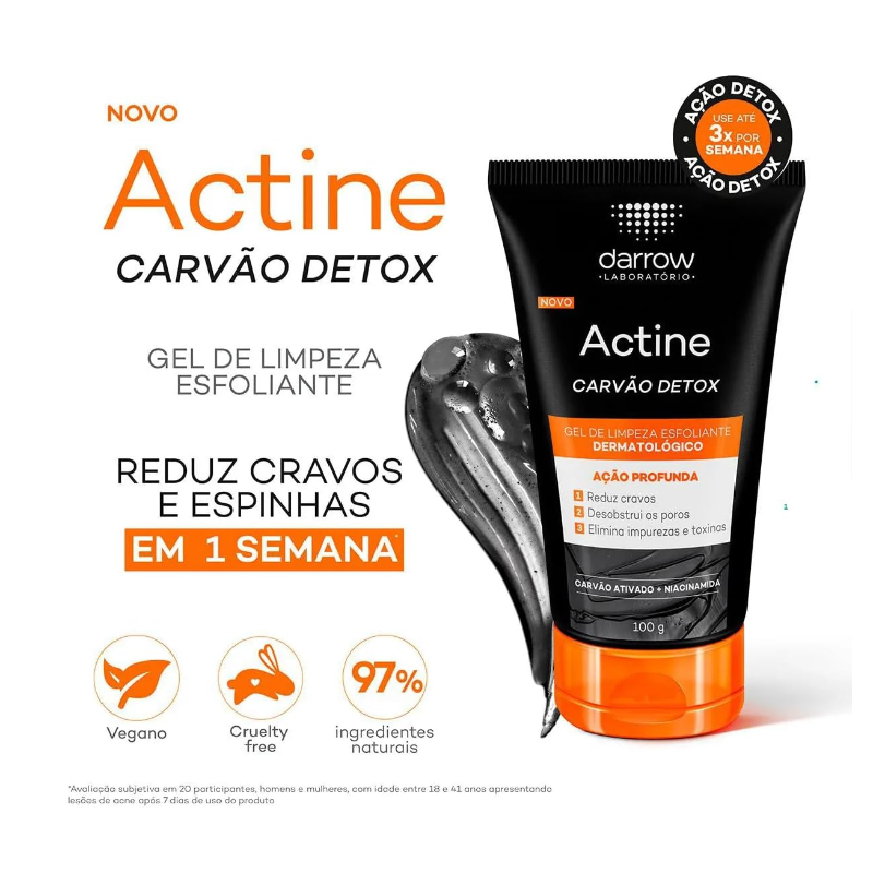 DARROW ACTINE CARVÃO DETOX GEL DE LIMPEZA ESFOLIANTE DERMATOLÓGICO