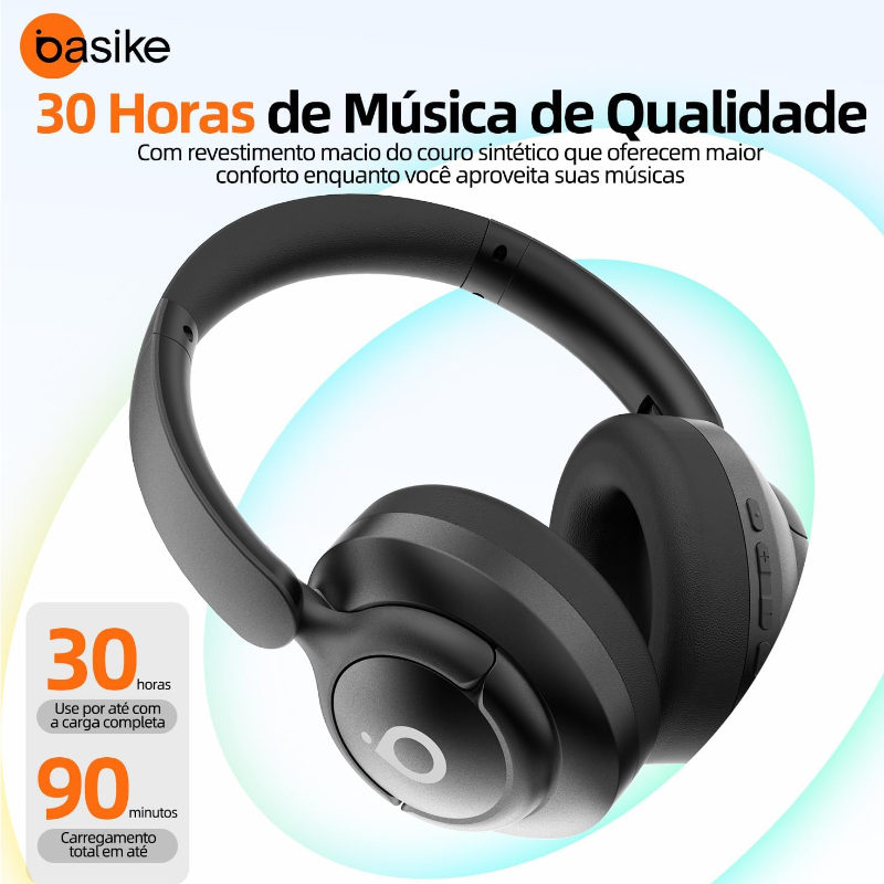 【Imersão Sonora sem Limites】Desfrute de transmissão de áudio de alta fidelidade com tecnologia Wireless 5.4, que reduz interferências e amplia a distância de conexão entre os dispositivos. Perfeito para quem busca qualidade de som excepcional em qualquer ambiente.【Conforto que Acompanha o Ritmo】Design moderno e ergonômico, com arco flexível e ajustes laterais que se adaptam perfeitamente à sua cabeça. O revestimento macio proporciona conforto prolongado, ideal para longas sessões de música ou chamadas.【Bateria que Dura o Dia Todo】Com até 30 horas de reprodução ininterrupta, você pode curtir sua playlist favorita ou participar de reuniões sem preocupações. A bateria de alta performance garante que você nunca seja interrompido.【Tecnologia de Cancelamento de Ruído】Foque apenas no que importa! O cancelamento de ruído ativo elimina barulhos externos, proporcionando uma experiência sonora imersiva e chamadas com clareza incomparável.【Qualidade e Segurança Garantidas】Além de materiais premium e design à prova de vazamentos de som, oferecemos a Garantia Basike Pós-Venda. Nosso compromisso é garantir sua satisfação com atendimento rápido e eficiente dentro de 24 horas. Compre com confiança e aproveite uma experiência única!