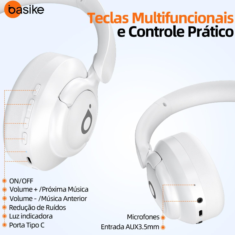 【Imersão Sonora sem Limites】Desfrute de transmissão de áudio de alta fidelidade com tecnologia Wireless 5.4, que reduz interferências e amplia a distância de conexão entre os dispositivos. Perfeito para quem busca qualidade de som excepcional em qualquer ambiente.【Conforto que Acompanha o Ritmo】Design moderno e ergonômico, com arco flexível e ajustes laterais que se adaptam perfeitamente à sua cabeça. O revestimento macio proporciona conforto prolongado, ideal para longas sessões de música ou chamadas.【Bateria que Dura o Dia Todo】Com até 30 horas de reprodução ininterrupta, você pode curtir sua playlist favorita ou participar de reuniões sem preocupações. A bateria de alta performance garante que você nunca seja interrompido.【Tecnologia de Cancelamento de Ruído】Foque apenas no que importa! O cancelamento de ruído ativo elimina barulhos externos, proporcionando uma experiência sonora imersiva e chamadas com clareza incomparável.【Qualidade e Segurança Garantidas】Além de materiais premium e design à prova de vazamentos de som, oferecemos a Garantia Basike Pós-Venda. Nosso compromisso é garantir sua satisfação com atendimento rápido e eficiente dentro de 24 horas. Compre com confiança e aproveite uma experiência única!