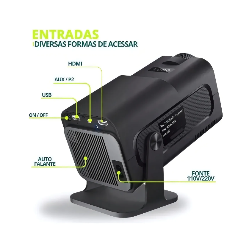 Descubra o Mini Projetor Hy320, a solução perfeita para quem busca uma experiência de cinema em casa. Com um design portátil e elegante na cor preta, este projetor é ideal para assistir a filmes, séries e jogos em qualquer lugar. Sua tecnologia de projeção LED oferece uma imagem brilhante com uma relação de contraste de 10000:1, garantindo cores vibrantes e detalhes nítidos. Compatível com Android 11.0, o Hy320 permite streaming direto de suas plataformas favoritas via Wi-Fi. Com resolução nativa de 1024 px x 768 px e suporte para formatos de vídeo de até 4K UHD, você pode desfrutar de uma tela que varia de 35" a 150". Além disso, o projetor possui conectividade Bluetooth, entradas USB e HDMI, facilitando a conexão com diversos dispositivos. O Mini Projetor Hy320 também se destaca pelo seu baixo consumo energético de apenas 50 W e uma vida útil da fonte de luz de até 50.000 horas. Com um nível de emissão de som em modo normal de apenas 1 dB, você pode aproveitar suas sessões de cinema sem interrupções. Inclui controle remoto e um cabo de alimentação, tornando sua experiência ainda mais prática e agradável.