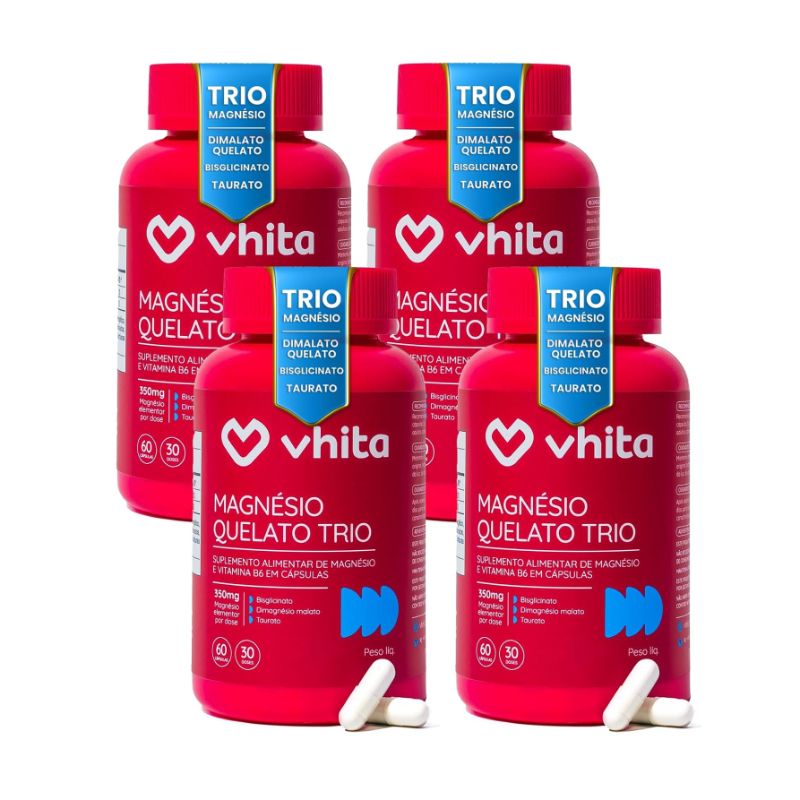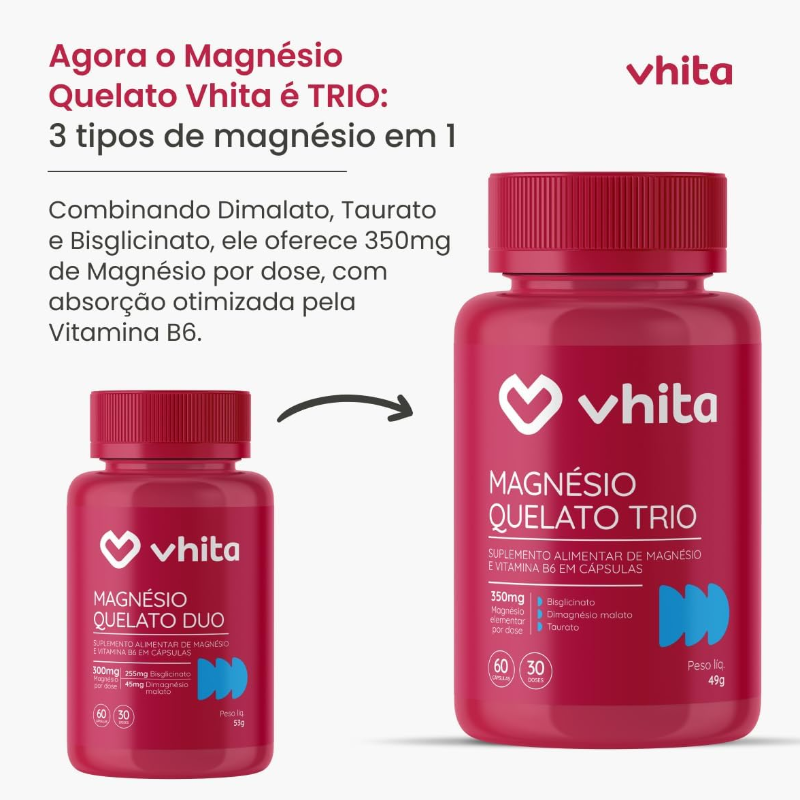 Magnésio Quelato Trio, Dimalato, Bisglicinato e Taurato com Vitamina B6 350mg Vhita 60 Cápsulas (4 unidades)