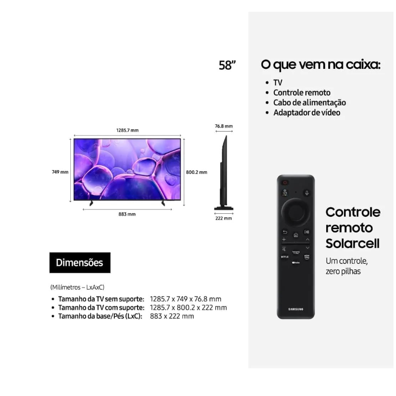 Samsung Combo Smart TV 58" Crystal UHD 4K U8500F 2025 + Soundbar Samsung HW-B400F