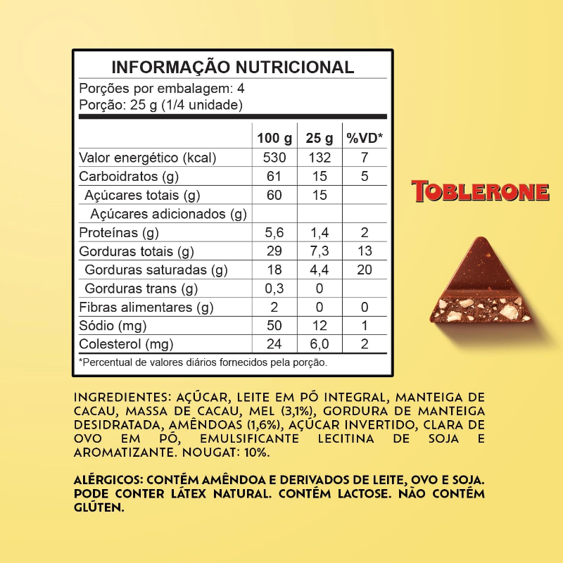 Chocolate ao Leite Nougat de Mel e Amêndoas Toblerone Caixa 100g - Importado
