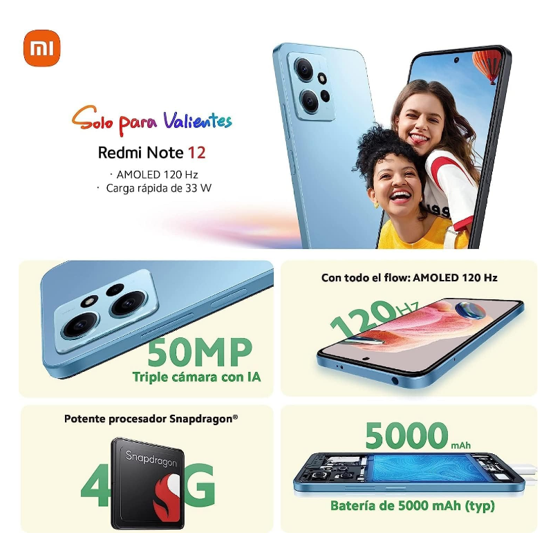 O Redmi Note 12 é um smartphone Android avançado e abrangente em todos os pontos de vista com algumas características excelentes. Tem uma grande tela de 6.67 polegadas com uma resolução de 2400x1080 pixels. As funcionalidades oferecidas pelo Redmi Note 12 são muitas e inovadoras. Começando pelo 4G que permite a transferência de dados e excelente navegação na internet. Enfatizamos a excelente memória interna de 128 GB com a possibilidade de expansão. O Redmi Note 12 é um produto com poucos concorrentes em termos de multimídia graças à câmera de 48 megapixels que permite ao Redmi Note 12 tirar fotos fantásticas com uma resolução de 8000x6000 pixels e gravar vídeos em alta definição (Full HD) com uma resolução de 1920x1080 pixels. Muito fino, 8 milímetros, o que torna o Redmi Note 12 realmente interessante.