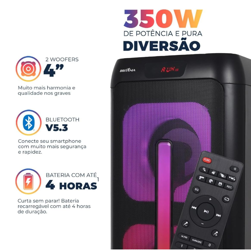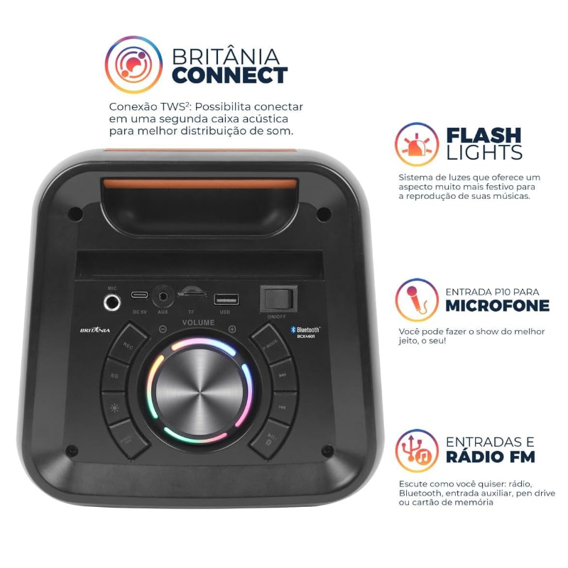 Caixa de Som Britânia BCX4601 Flash Lights Bluetooth V5.3 350W
