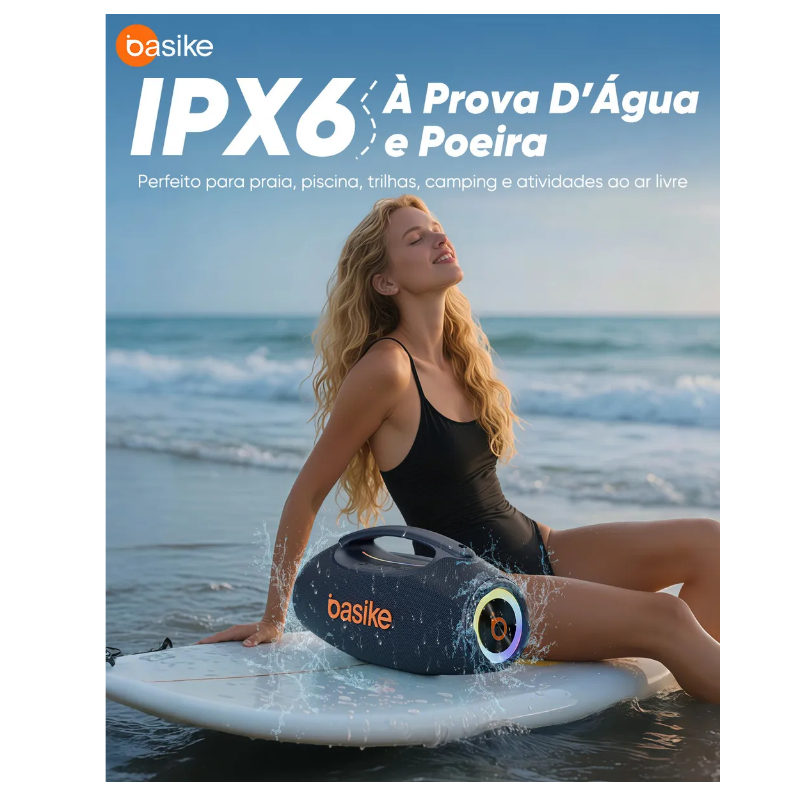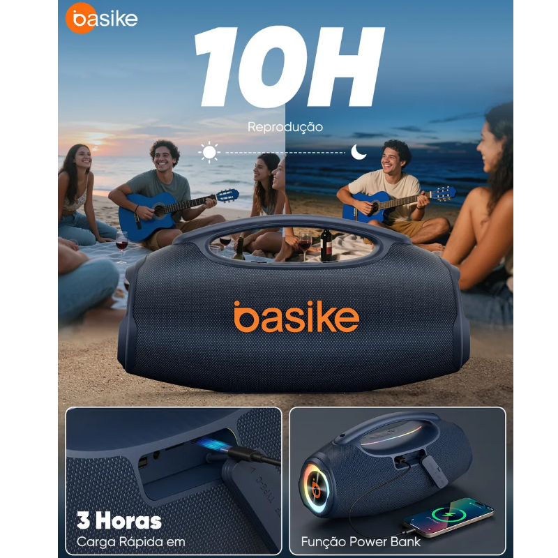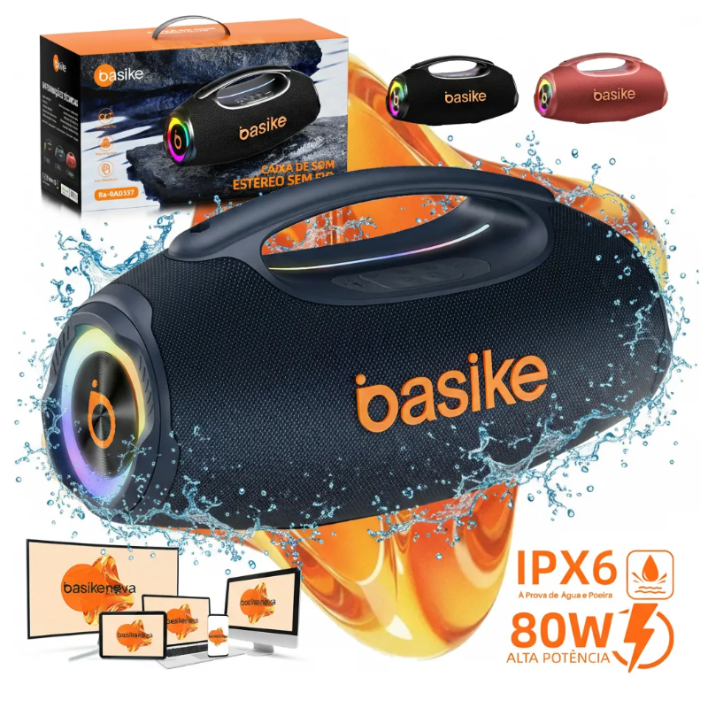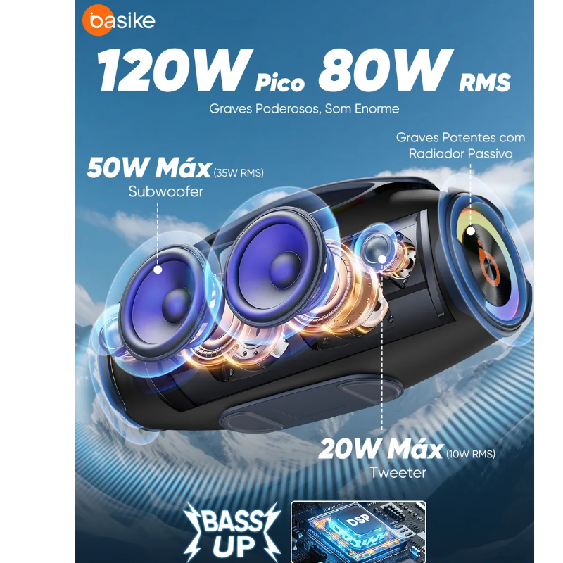 Basike Caixa de Som Boombox 80W 8000Mah 10hrs Portátil Bluetooth 5.3