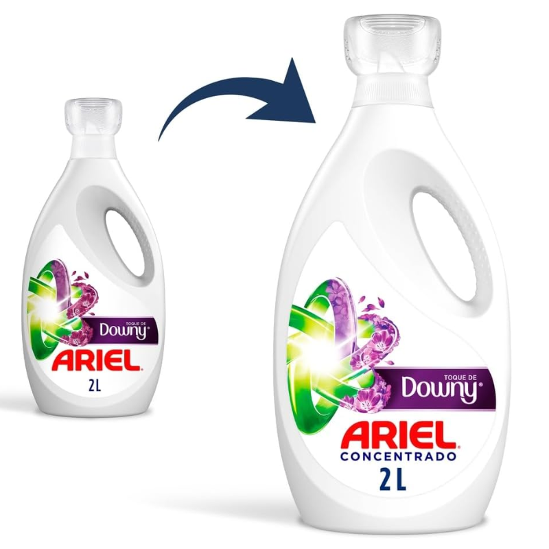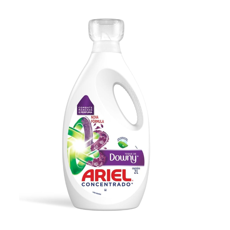 O lava roupas Ariel Concentrado com Toque de Downy ajuda a combater manchas e perfuma, oferecendo a limpeza de Ariel com um toque do perfume de Downy. Sinta as notas frutais e cítricas, alinhadas com as florais e um leve teor amadeirado no fim. O lava roupas Ariel Concentrado com Toque de Downy não deixa resíduos visíveis nos tecidos e ajuda a prevenir sinais de desgaste nas roupas. Penetra e cuida das fibras melhor que os pós, além de contar com tensoativos biodegradáveis. A garrafa de Ariel Concentrado com Toque de Downy é desenvolvida para o fácil manuseio*, e sua tampinha dosadora traz praticidade na lavagem das roupas. Para utilizar Ariel Concentrado com Toque de Downy é fácil**: basta medir 80mL do produto, aplicar uma camada sobre as manchas, se for necessário, e despejar o restante no dispenser ou diretamente na máquina. *Garrafa com design funcional. **Baseado em instruções de uso do fabricante. ***Limpeza de Ariel e perfume duradouro de Downy. ***Concentração de perfume depositada e liberada do tecido seco medida por métodos analíticos.