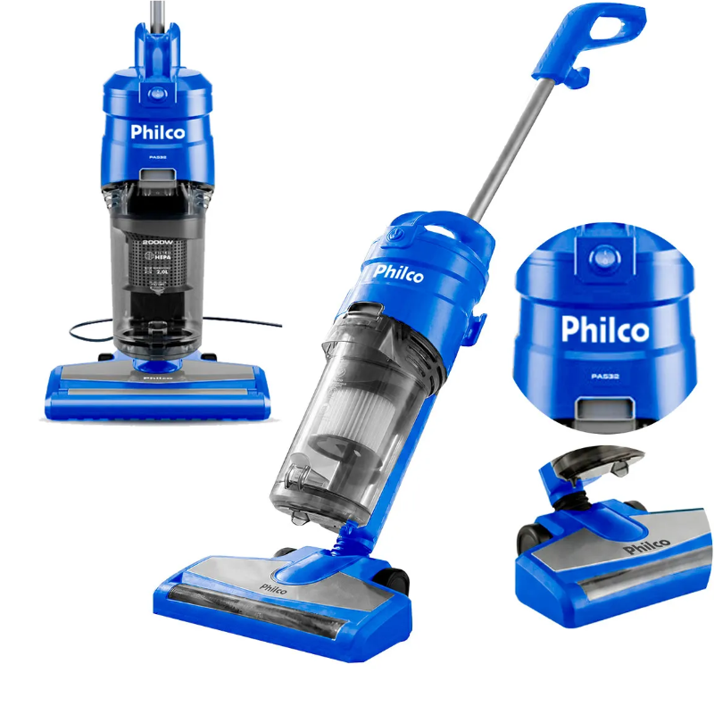 O aspirador de pó Philco PAS32 Power Clean oferece alta potência e praticidade para a limpeza doméstica. Com 2000W e tecnologia ciclone, mantém a sucção constante sem perda de desempenho. Possui reservatório de 2 litros lavável e desmontável, dispensando o uso de saco descartável. O design 2 em 1 permite o uso como aspirador vertical ou portátil de mão, ideal para diferentes superfícies e necessidades do dia a dia.