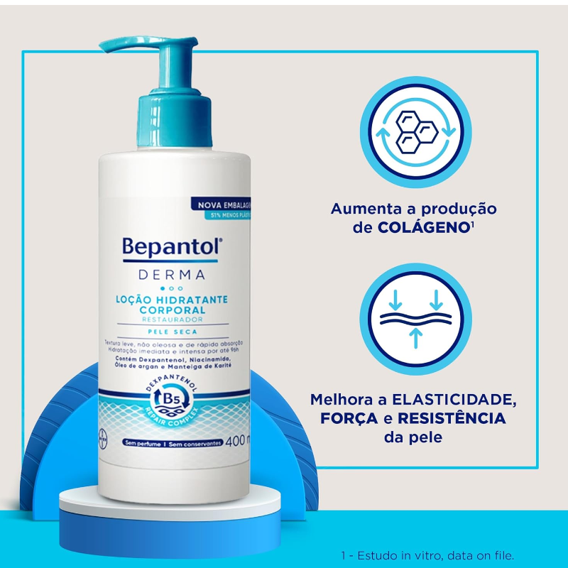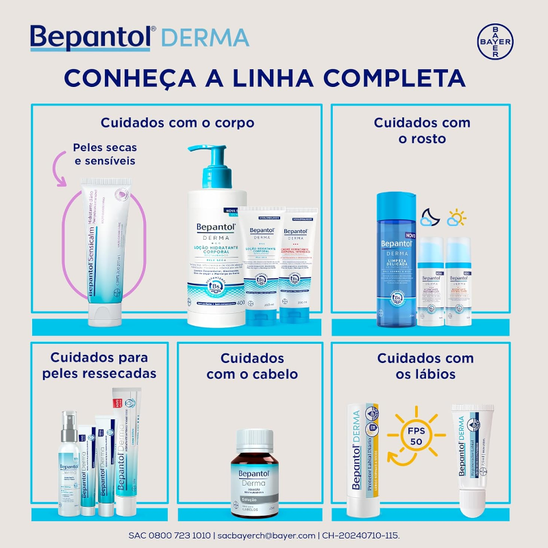 O novo Bepantol Derma Hidratante Corporal Restaurador Diário é um produto ideal para a hidratação e restauração da pele seca e irritada. Com uma fórmula exclusiva que contém Dexpantenol Repair Complex, o hidratante Bepantol oferece uma hidratação imediata e duradoura por até 48 horas. Além disso, sua textura leve, não oleosa e de rápida absorção ajuda a acalmar e suavizar a pele desde a primeira aplicação. Composto por ingredientes nutritivos e hidratantes como Dexpantenol, Niacinamida, Glicerina, Isoestearato Isopropílico, Óleo de argan e manteiga de karité, o creme hidratante corporal atua nas causas da pele seca, restaurando a pele de dentro para fora. Enquanto o Dexpantenol age profundamente na pele para reestabelecer o processo de renovação celular, a Niacinamida ajuda a acalmar a pele seca. A Glicerina, um umectante natural, diminui a perda de água da pele e entrega uma hidratação imediata e prolongada. Já o Isoestearato Isopropílico, um lipídio fisiológico, suporta a reorganização da bicamada lipídica. Por fim, o Óleo de argan e a manteiga de karité são ingredientes suaves à pele que substituem os lipídios perdidos pela pele. Combine Bepantol Derma Hidratante Restaurador Diário com um hidratante facial para uma rotina de skincare completa.