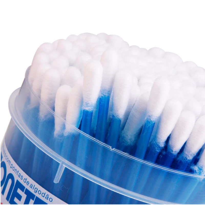 Cotonetes é feito com algodão 100% puro e possui hastes plásticas flexíveis; por isso oferece toda a suavidade, conforto e absorção para o cuidado da sua pele; cotonetes é indicado para a higiene pessoal de toda a família; pode ser usado para limpar delicadamente a parte externa da orelha (desde que não atinja o canal do ouvido), as dobrinhas do pescoço e pernas do bebê, além de ser recomendado para aplicar e remover maquiagem.