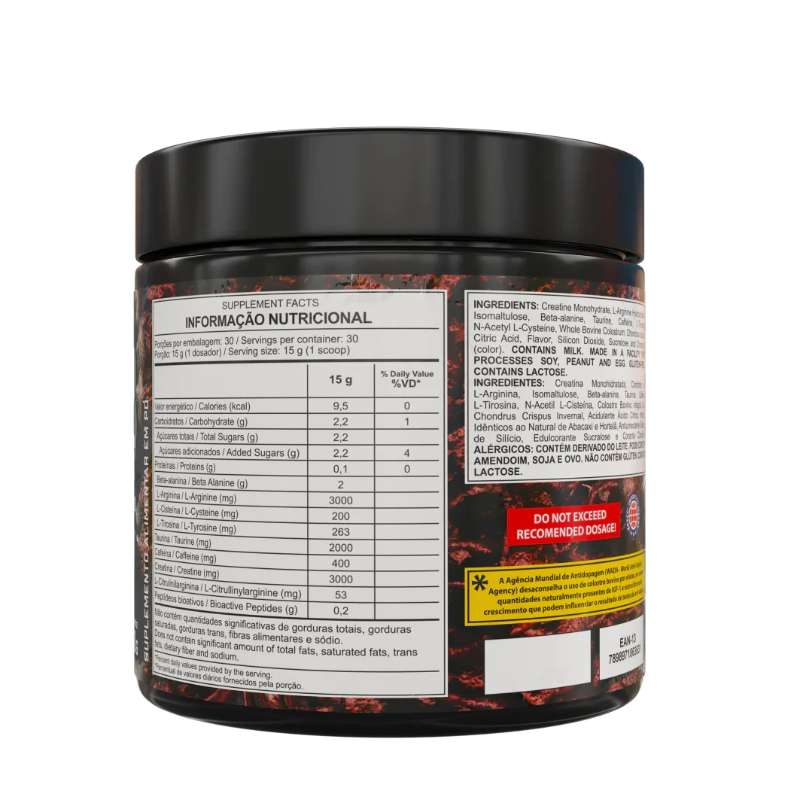 Liberte sua força com Carnage Underground Pre Workout da Dark Lab! Um pré-treino de alta potência desenvolvido para atletas que não aceitam limites. Sua fórmula avançada combina 3000 mg de creatina, 3000 mg de arginina, 2000 mg de taurina e 2000 mg de beta-alanina, além de ingredientes cuidadosamente selecionados para proporcionar máxima performance, explosão muscular e foco extremo. Com Carnage Underground, você vai sentir o verdadeiro impacto de um pré-treino underground que vai elevar seus treinos a outro nível.