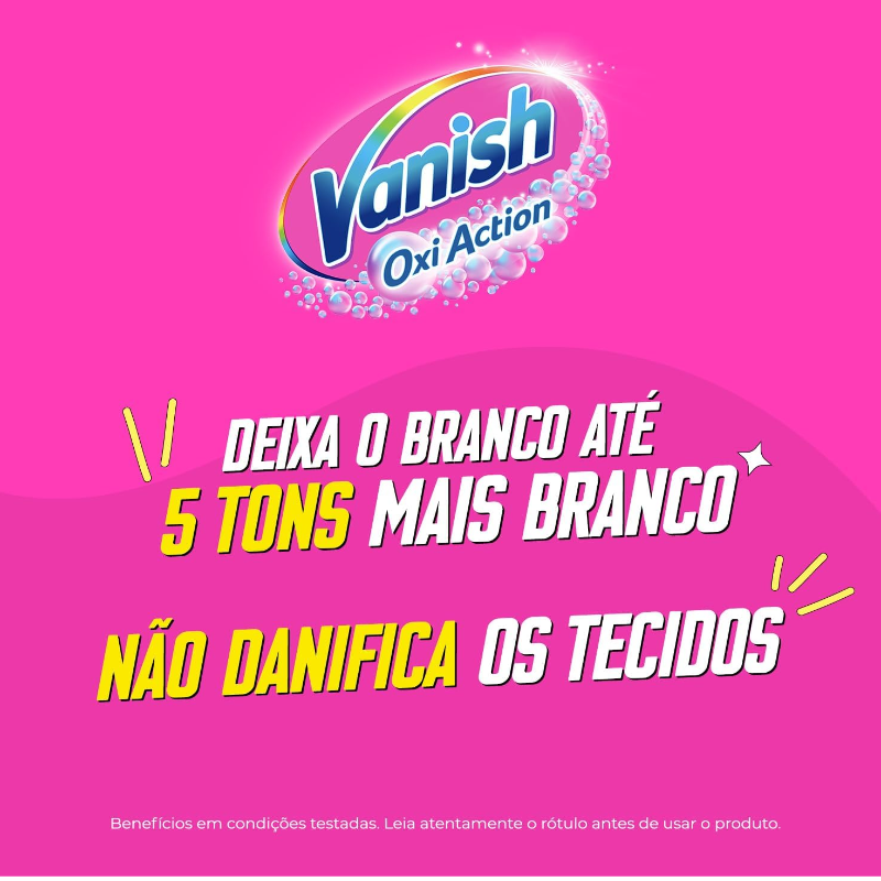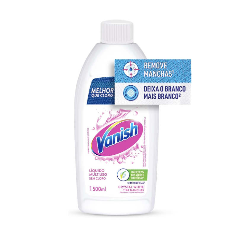 Transforme suas roupas com o poder do alvejante Vanish Líquido Crystal White, a solução definitiva para manter suas peças impecáveis por mais tempo. Adeus as manchas do dia a dia, olá branco mais branco! Com sua fórmula sem cloro, o Vanish tira manchas protege as cores e prolonga a vida útil das suas roupas, superando o cloro em eficácia. Proporciona uma higienização profunda sem danificar os tecidos, como o algodão. A aplicação é rápida e prática, graças ao formato em líquido. Descubra o segredo para manter suas roupas impecáveis por mais tempo com alvejante sem cloro Vanish Líquido Crystal White.