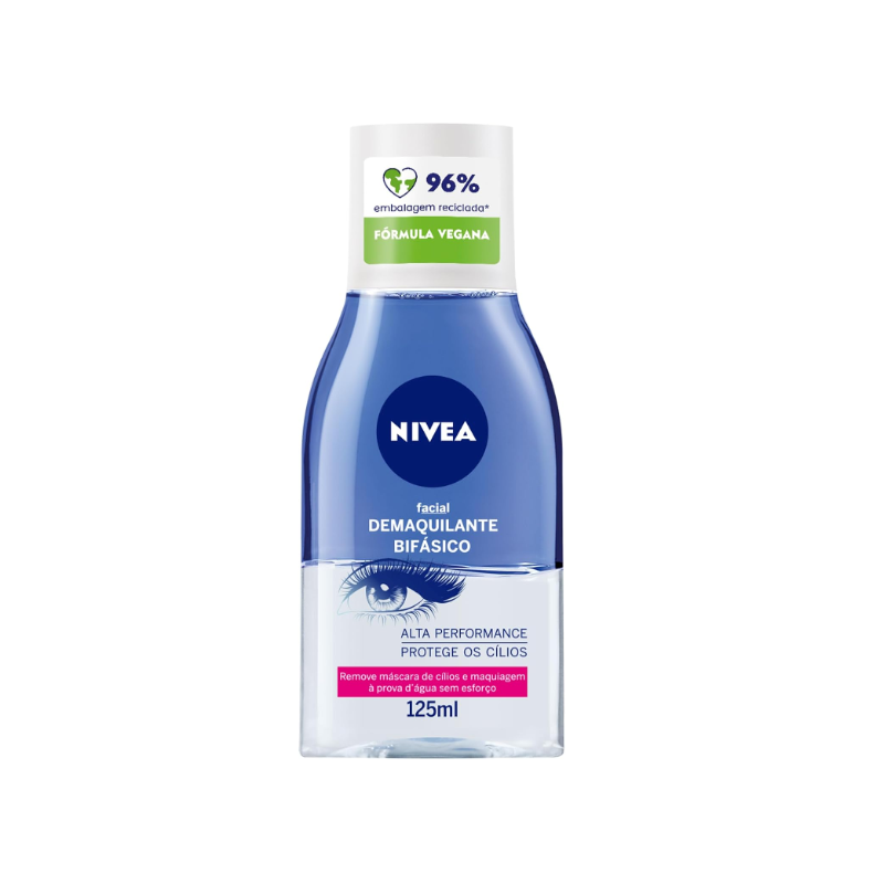 O que é? NIVEA Demaquilante Bifásico é um demaquilante facial desenvolvido para retirar a maquiagem da pele, inclusive a maquiagem à prova d’água. Para que serve? Dermatologicamente e oftalmologicamente testado, NIVEA Demaquilante Bifásico possui em sua fórmula óleo de girassol, sendo ideal para retirar a maquiagem à prova d’água, inclusive para fazer a remoção da máscara de cílios, tudo sem agredir a pele e as áreas mais delicadas do rosto, como por exemplo os olhos. Além de não deixar resíduos de produtos na pele, este demaquilante, de fórmula vegana, é livre de parabenos, sulfato, óleo mineral e álcool etílico. De alta performance, deixa a rotina de quem usa maquiagem muito mais prática.