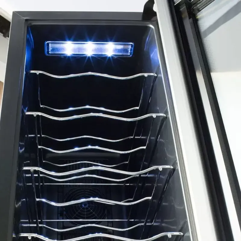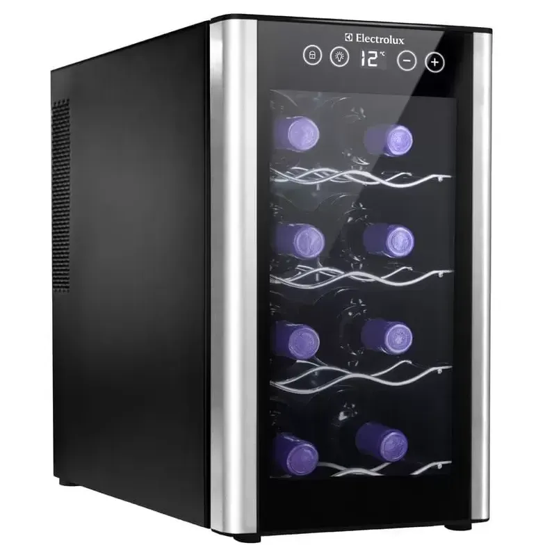 A Adega de Vinhos Electrolux ACB08 para 8 garrafas possui display de temperatura externo, que permite controlar a temperatura sem ter que abrir a adega desnecessariamente. Seu sistema de iluminação interna com LEDs conta com pequenos emissores de luz, que não danificam as características originais do vinho. É produzida com material altamente durável, com acabamento em alumínio escovado. Compacta e elegante, essa adega é ideal para qualquer espaço da sua casa.