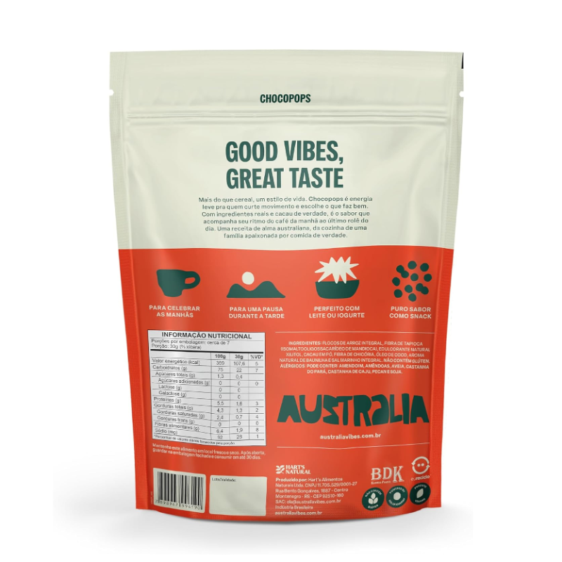 Compartilhamos com vocês, mais uma opção saudável para o seu café da manhã ou lanchinho: ChocoPops Australia. Zero adição de açúcares, crocante, saboroso e saudável, feito com os melhores ingredientes naturais, sem corantes ou conservantes artificiais. Toda a qualidade Hart’s Natural que você já conhece. • ZERO Açúcar • Produto VEGANO • Certificado KOSHER • Não contém GLÚTEN • Sem LACTOSE • Alto Conteúdo em FIBRAS • MUITO BAIXO em Sódio • 100% NATURAL