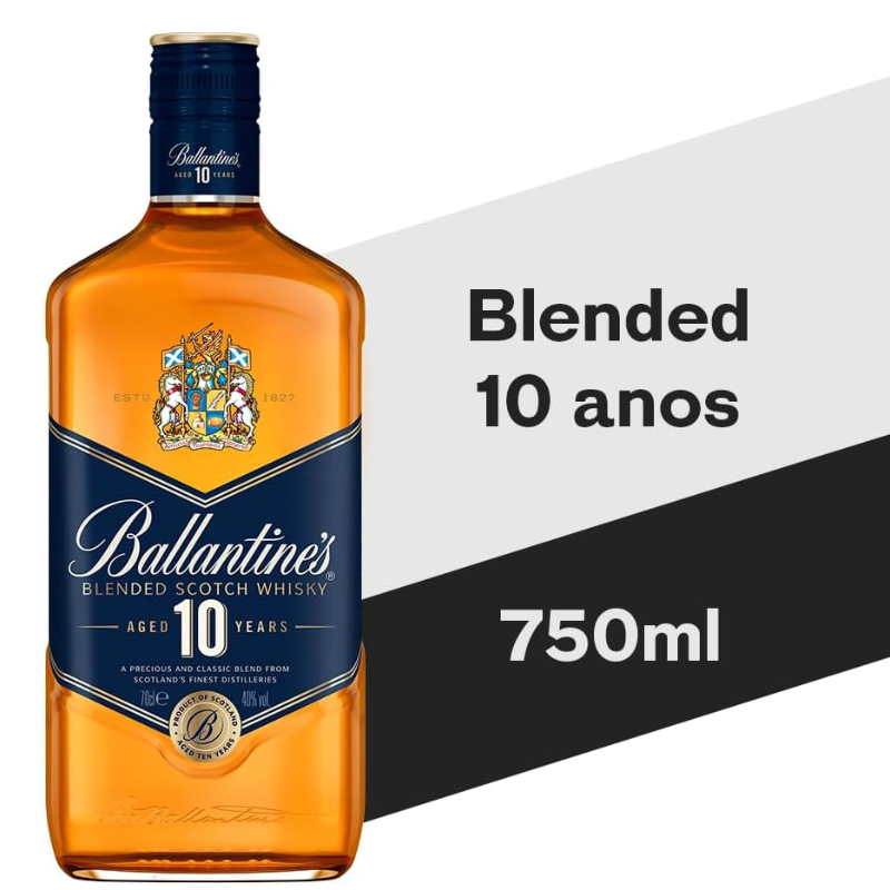 O blend sofisticado do Ballantine's 10 anos é envelhecido por pelo menos 10 anos e combina o suave e o complexo. Tem toques de mel e caramelo com uma textura cremosa, além de equilibrar excelência e tradição. O Whisky Ballantine's 10 anos de 1 litro possui uma graduação alcoólica de 40%. É proibida a venda e o consumo de bebidas alcoólicas para menores de 18 anos. Se beber não dirija.