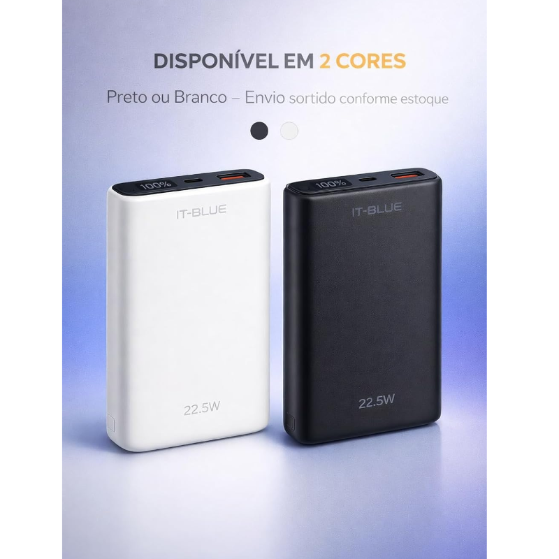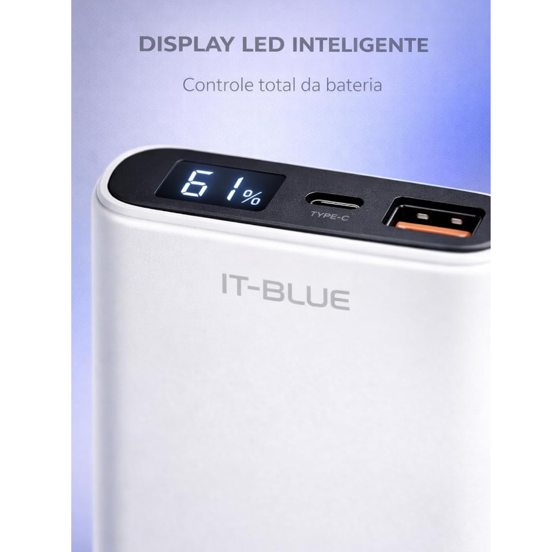 Homologado pela Anatel: 16557-21-10129 – segurança garantida com certificação oficial para uso no Brasil🔋 Capacidade real de 10.000mAh – recarregue seu smartphone várias vezes com eficiência⚡ Carregamento turbo PD 20W – energia rápida para celulares compatíveis com Power Delivery🔌 2 saídas USB + entrada USB-C – carregue dois dispositivos ao mesmo tempo com praticidade🔦 Display LED inteligente – indicador digital de bateria para controle preciso da carga🛡️ Proteção contra curto, sobrecarga e superaquecimento – carregamento seguro para seus aparelhos📱 Compatível com Android, iPhone, fones Bluetooth, tablets e mais – versatilidade total✈️ Portátil, leve e ideal para viagens – cabe no bolso, mochila ou nécessaire