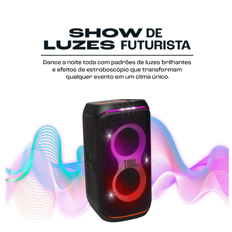 Experimente a verdadeira energia de uma festa com o JBL PartyBox Club 120! Equipado com o poderoso JBL Pro Sound, este sistema de som oferece uma reprodução clara e dinâmica, com graves profundos, garantindo uma experiência sonora imersiva. Com um show de luzes futurista que inclui efeitos de luzes estreladas, trilhas de luzes frias e efeitos estroboscópicos sincronizados com a música, cada batida é acompanhada por uma exibição visual envolvente. Com até 12 horas de reprodução contínua com uma única carga, e a conveniência de uma bateria substituível, a diversão não precisa parar. A alça dobrável facilita o transporte para qualquer lugar, enquanto a resistência a respingos IPX4 garante que um pouco de chuva não estrague a festa. Além disso, a tecnologia avançada de aumento de som de IA ajusta a resposta da caixa de som em tempo real, minimizando distorções e maximizando a saída de graves e o volume geral para um desempenho de áudio superior. Com a capacidade de emparelhar dois PartyBox Club 120 e conectar várias caixas habilitadas para JBL Auracast™ sem fio usando o aplicativo JBL PartyBox. O PartyBox Club 120 oferece entradas duplas para microfone e instrumentos musicais, com ajustes de equalização dedicados para karaokê e um aplicativo que permite personalizar cores e padrões de luzes, garantindo que cada festa seja única e memorável.