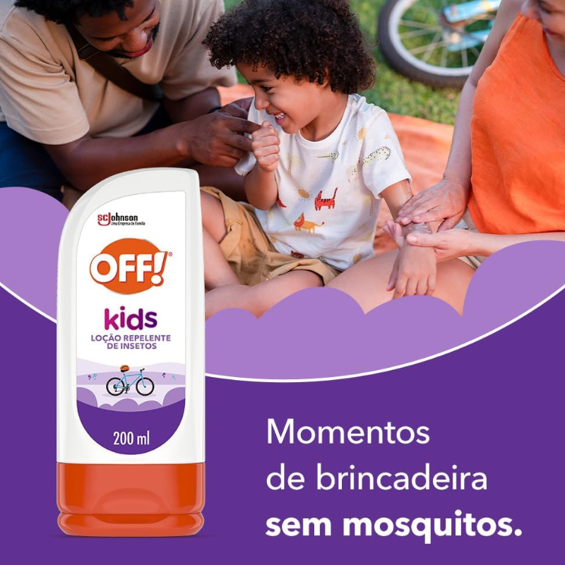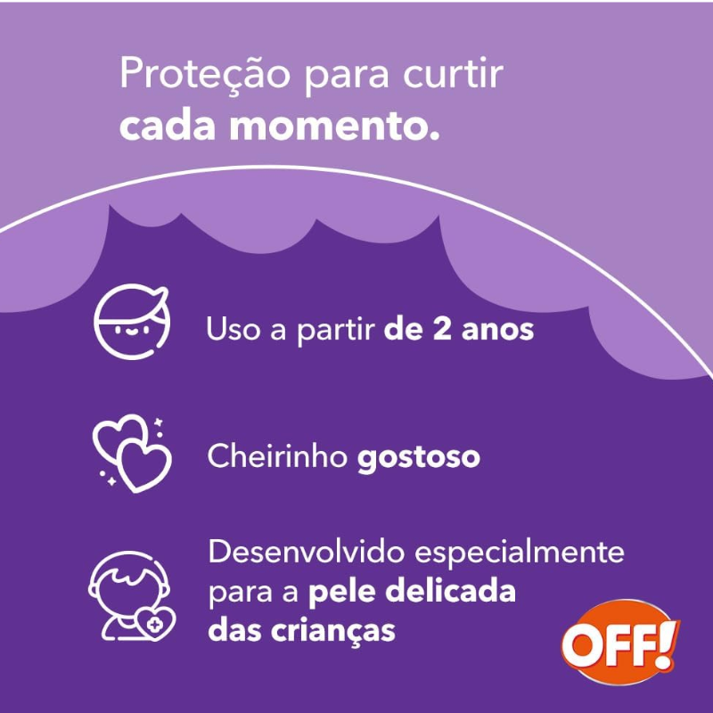 OFF! Kids é a escolha certa para os pequenos e foi cuidadosamente desenvolvido para proteger a pele delicada das crianças contra picadas de mosquitos. Indicado como repelente infantil, sua fórmula exclusiva, além de não ser oleosa, possui um cheirinho gostoso e pode ser usado em crianças maiores de 2 anos.