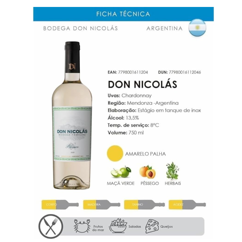 Don Nicolás Vinho Branco Argentino Chardonnay 750Ml