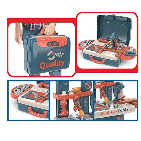 Oficina de Construções 3 em 1 Bancada de Ferramentas, Maleta e Oficina Polibrinq - 9011M