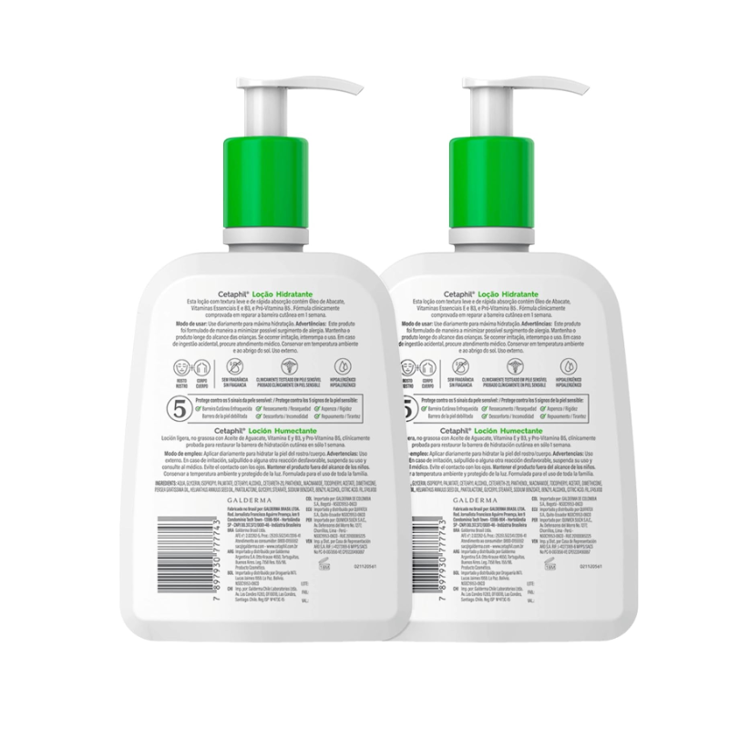 Kit com loção hidratante para corpo e face, indicado para peles equilibradas e secas. Cetaphil Loção Hidratante Corporal e Facial promove hidratação instantânea de forma profunda e prolongada. O Kit Cetaphil Loção Hidratante Corporal e Facial conta com produtos de formulação leve e não oleosa. Sua fórmula é enriquecida com emolientes e umectantes, que previnem a perda de umidade da pele, proporcionando mais de 96 horas de hidratação após a aplicação. Contém glicerina, dimeticona e óleo de macadâmia, que promovem hidratação e ajudam a repor lipídios do estrato córneo.