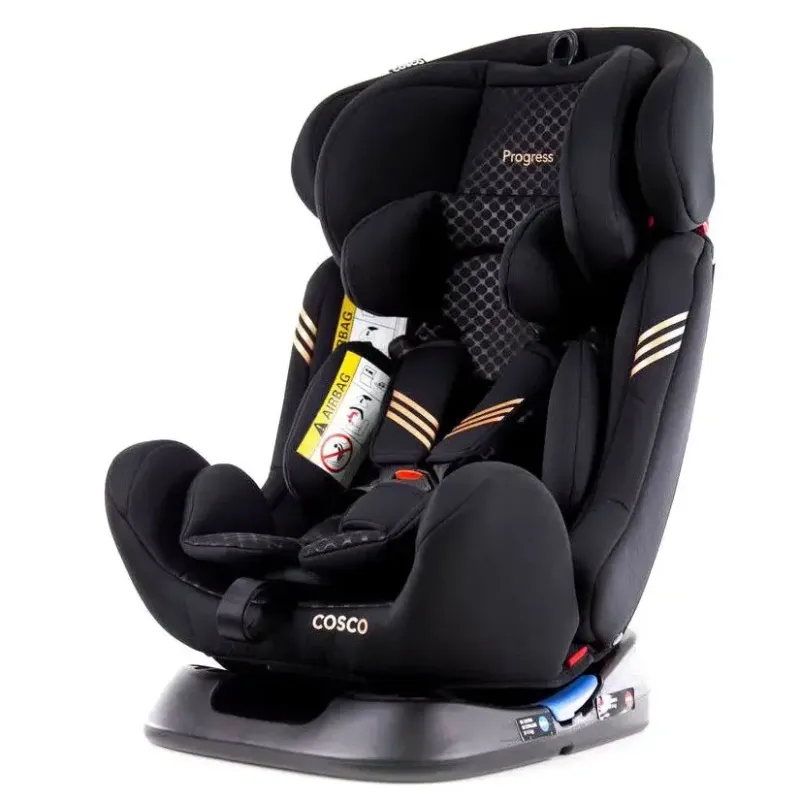 Com uma excelente inclinação para os menores e ajustes para acompanhar o crescimento da criança, a cadeirinha para auto Progress da Cosco é confortável e progressiva, para todas as fases dos pequenos. A Progress da Cosco é indicada para crianças de 0 a 36kg, ou seja, é uma opção excelente para quem deseja uma cadeirinha para utilizar em todas as fases da criança, do nascimento até os 10 anos aproximadamente. Tem tecido macio e é muito acolchoada. Reclinável em 3 posições, ela possui uma posição super inclinada para instalação de costas ao movimento e mais 2 posições para as crianças maiores de frente ao movimento, torna qualquer passeio seguro e confortável. Para acompanhar o crescimento da criança, possui almofadas internas removíveis e ajuste de altura do apoio de cabeça em 9 posições junto com a altura dos cintos de 5 pontos, deixando muito mais fácil a regulagem correta. Instalação fácil e com guias sinalizadas para a passagem dos cintos de segurança do veículo. Para facilitar a limpeza, a capa e as almofadas são removíveis e laváveis à máquina. Cadeirinha aprovada pelo INMETRO.
