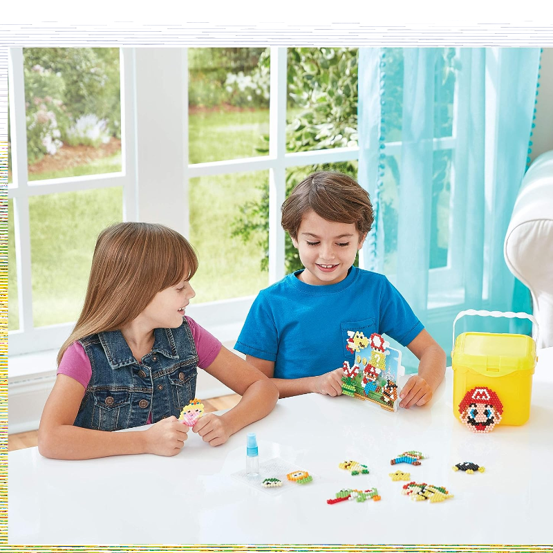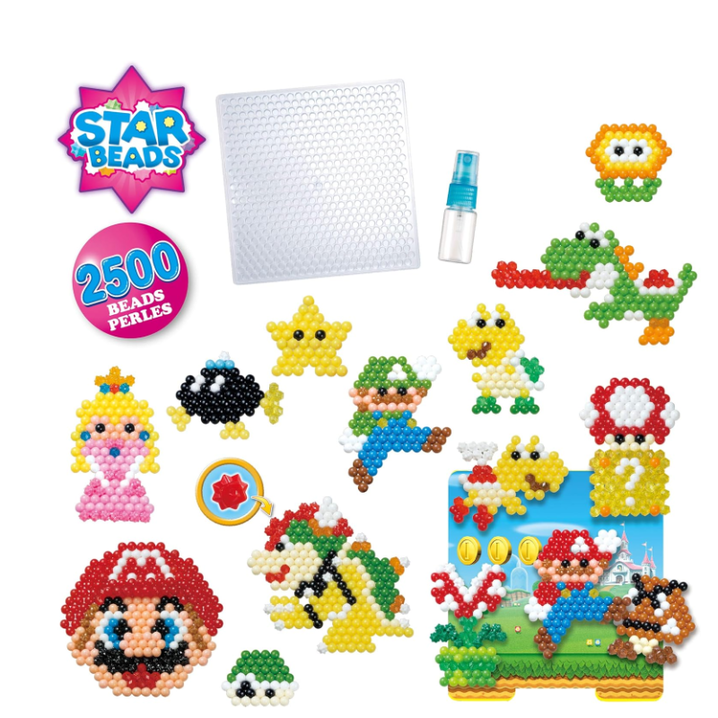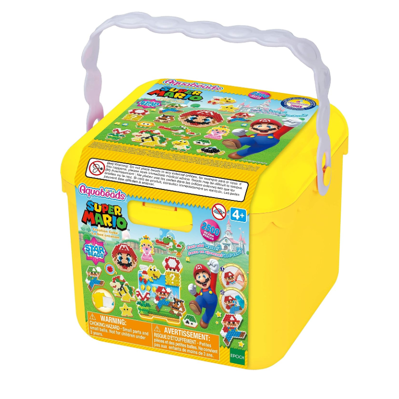 Inspire a criatividade com o kit Creation Cube - Super Mario, o brinquedo original para atividades de artesanato com miçangas que você "cola com água". Creation Cube -Super Mario inclui mais de 2.500 miçangas de estrelas, sólidas e de joias em 30 cores, telas de criação, folha de fundo, pinos de design, bandeja de layout, pulverizador, folhas de modelo e instruções.