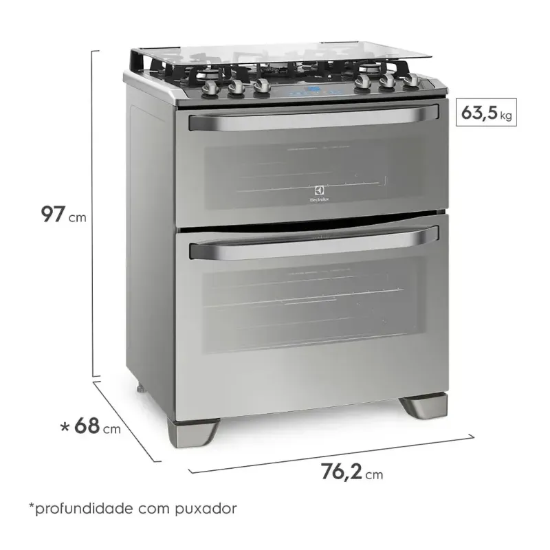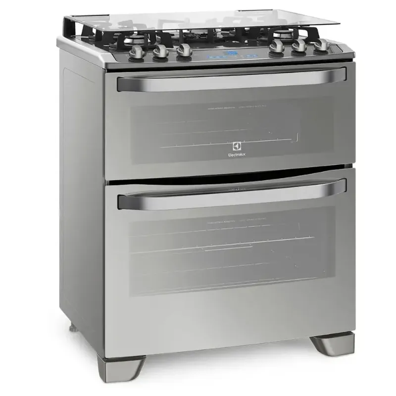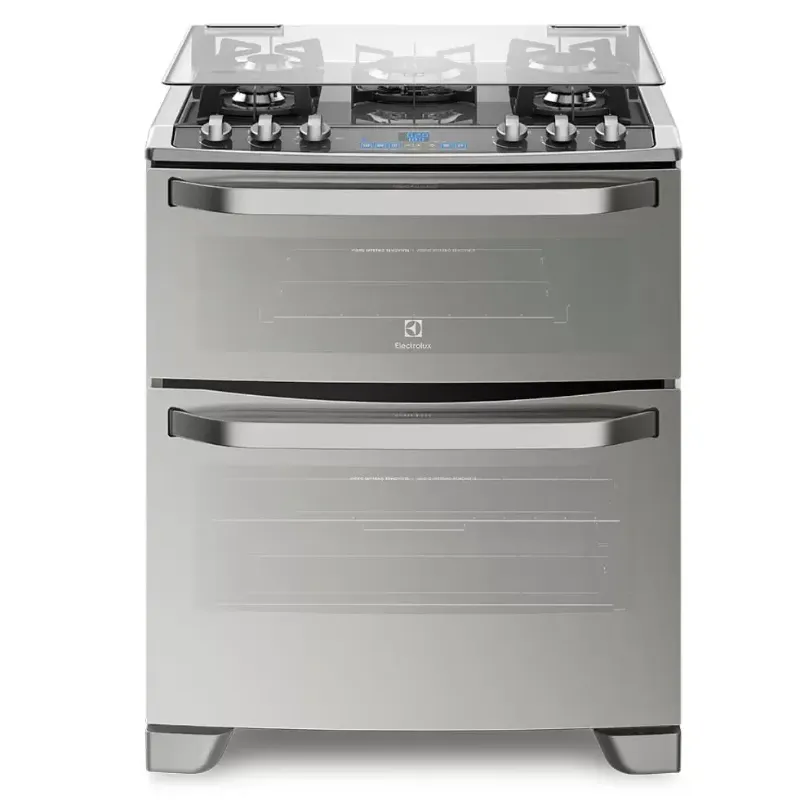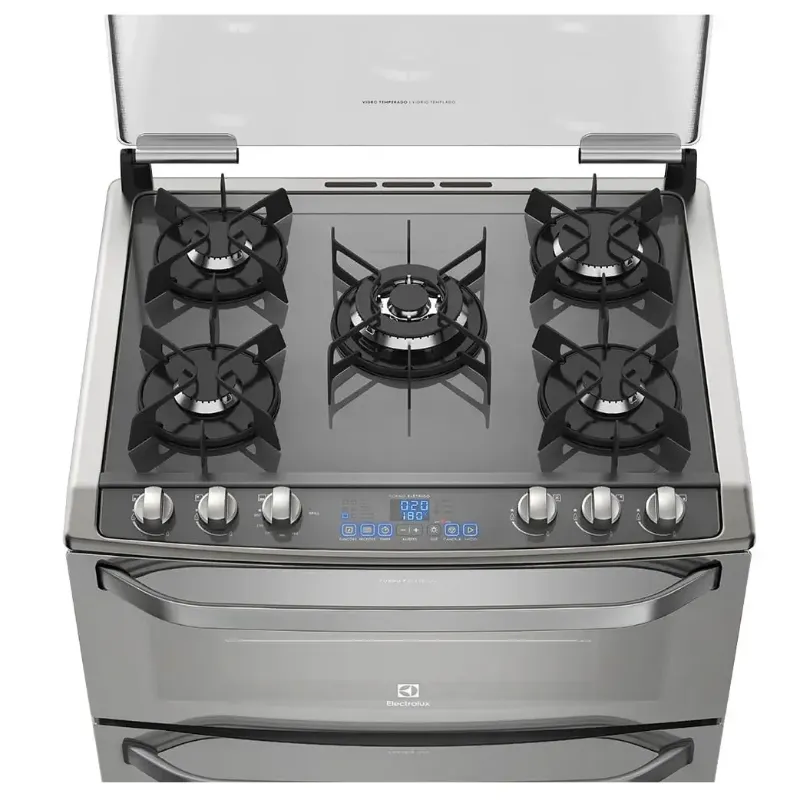 Fogão 5 Bocas Electrolux Prata com Mesa de Vidro e Forno Duplo (76DXV)