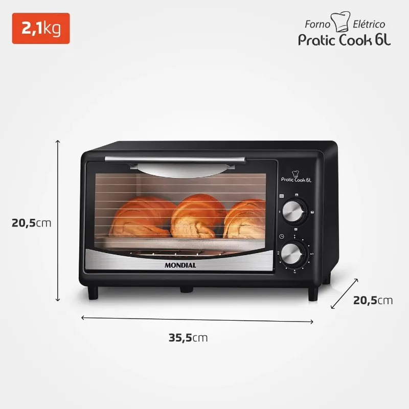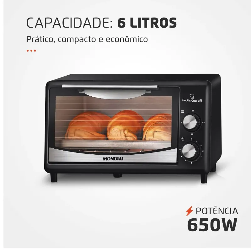 Forno Pratic Cook 6L, Mondial, Preto, 650W, 220V - FR-09