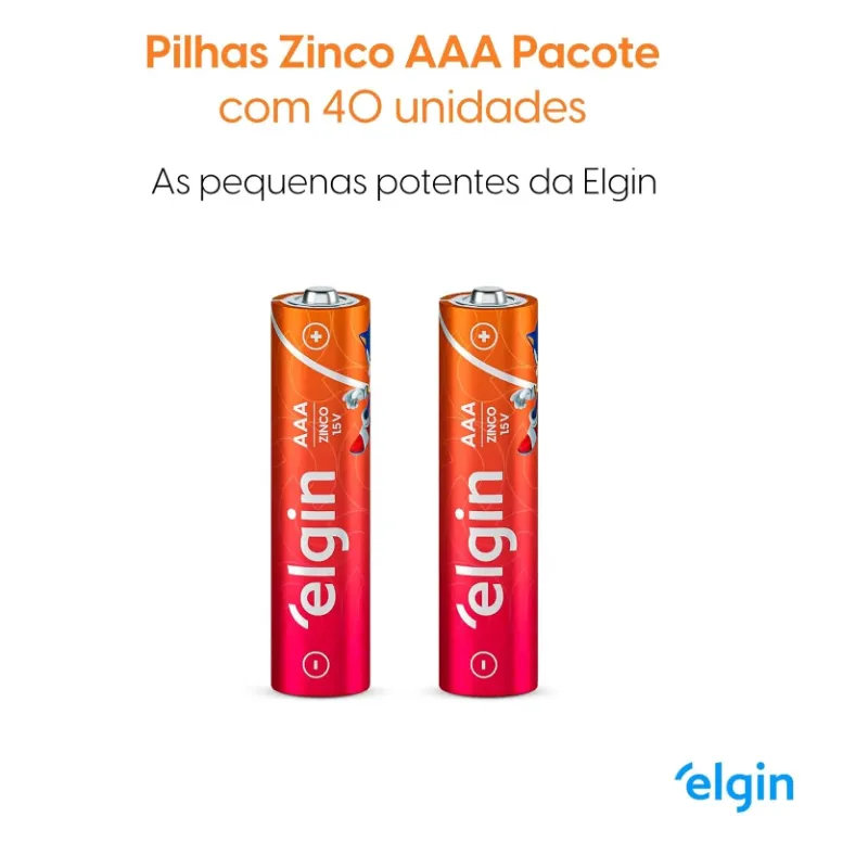 Caixa de Pilha AAA com 40 unidades Elgin Palito - Tubo, Zinco