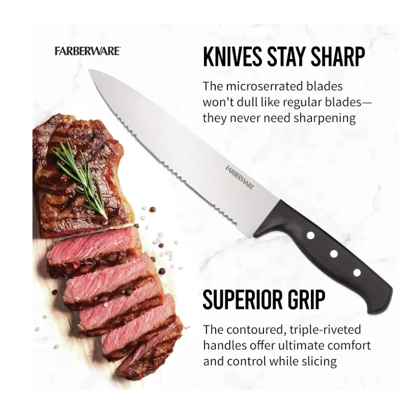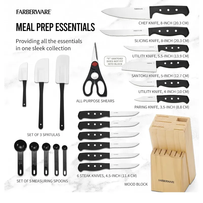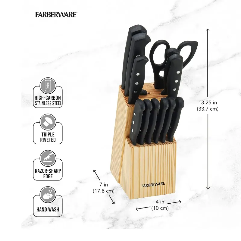 Conjunto de facas e utensílios de cozinha de aço inoxidável de alto carbono Farberware