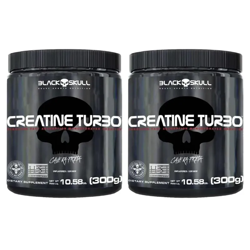 Kit 2X Creatine Turbo Suplemento Alimentar Black Skull 300g Caveira Preta Creatina Monohidratada Sem Sabor