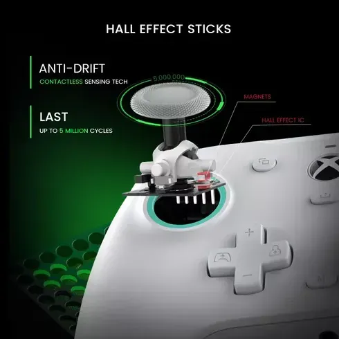 Usando sensores magnéticos sem contato para garantir que os sticks nunca se desgastem durante sua vida útil, o GameSir G7 SE evita o desvio do stick e garante um desempenho confiável e durável do stick para jogos no Xbox e no PC.