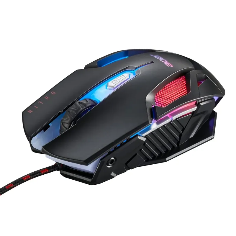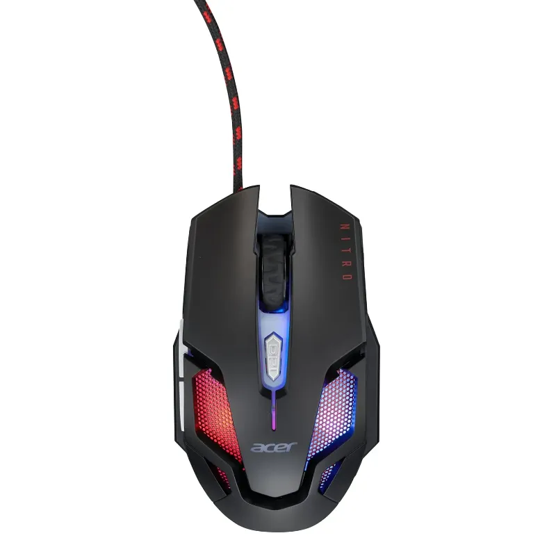 Nitro Mouse NMW200 O Acer® Nitro Mouse tem a “jogada” perfeita para todos os tipos de jogadores casuais ou profissionais que buscam mais competitividade em seus games com recursos que garantem maior imersão em seus jogos. Sensor óptico 6D Sensor óptico com 6 níveis varíavel de DPI de (800 a 7200) para movimentos reativos e melhor experiência em jogo. Iluminação Apresenta 7 cores diferentes que iluminam o exterior e seu logotipo, deixando seu setup mais harmonioso. Hipersensibilidade Maior precisão para os seus jogos com uma taxa de resposta a 7000 quadros por segundo e uma taxa de comunicação de 125 MHz, para você nao perder nenhum movimento em suas jogatinas. Taxa de resposta por segundo Referência de 7000 quadros por segundo Aceleração (Maior capacidade de acessar toda a tela do pc com pequenos movimentos) 20g por cm Frequência máxima de comunicação com dispositivo conectado (PC ou Notebook) 125 MHz Quantidade total de de clicks suportado 3 milhões Tipo de conexão Conexão USB dourada Tamanho do cabo e suas características 1.8m de cabo revesti Compatibilidade com Sistema Operacional Windows® 11, Windows® 10, Windows® 8.1, Windows® 8 e Windows® 7 Descrição do Produto Acer® Nitro Mouse Gamer Óptico NMW200 Conteúdo da Caixa Mouse Gamer Óptico Acer Nitro (com fio) garantia e manual de instruções