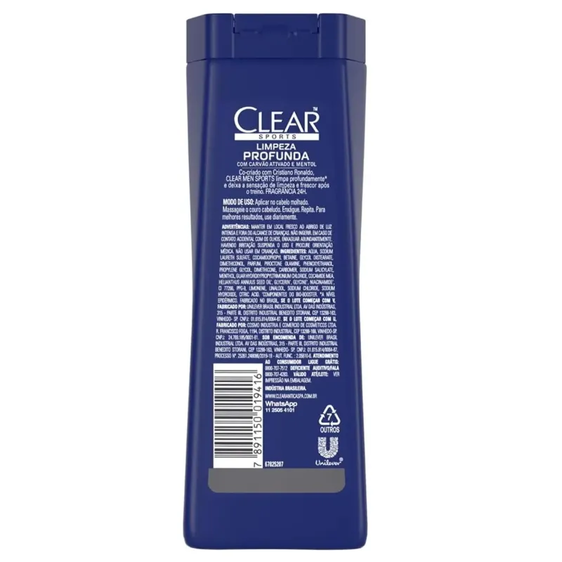 Shampoo Clear Anticaspa Sports Men, Limpeza Profunda, 400ml