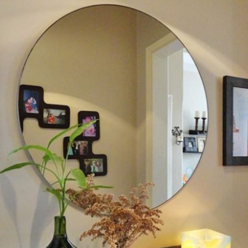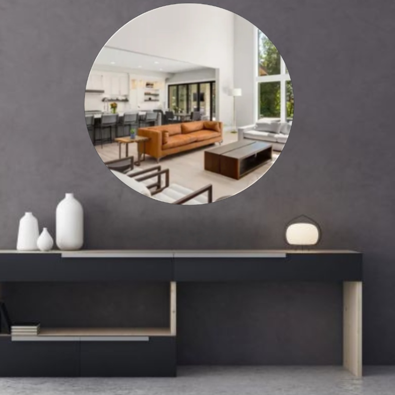 Nosso Espelho Redondo Decorativo feito em Vidro Cristal de 2mm, produto de ótima qualidade que foca bem a imagem e reflete sem distorções.